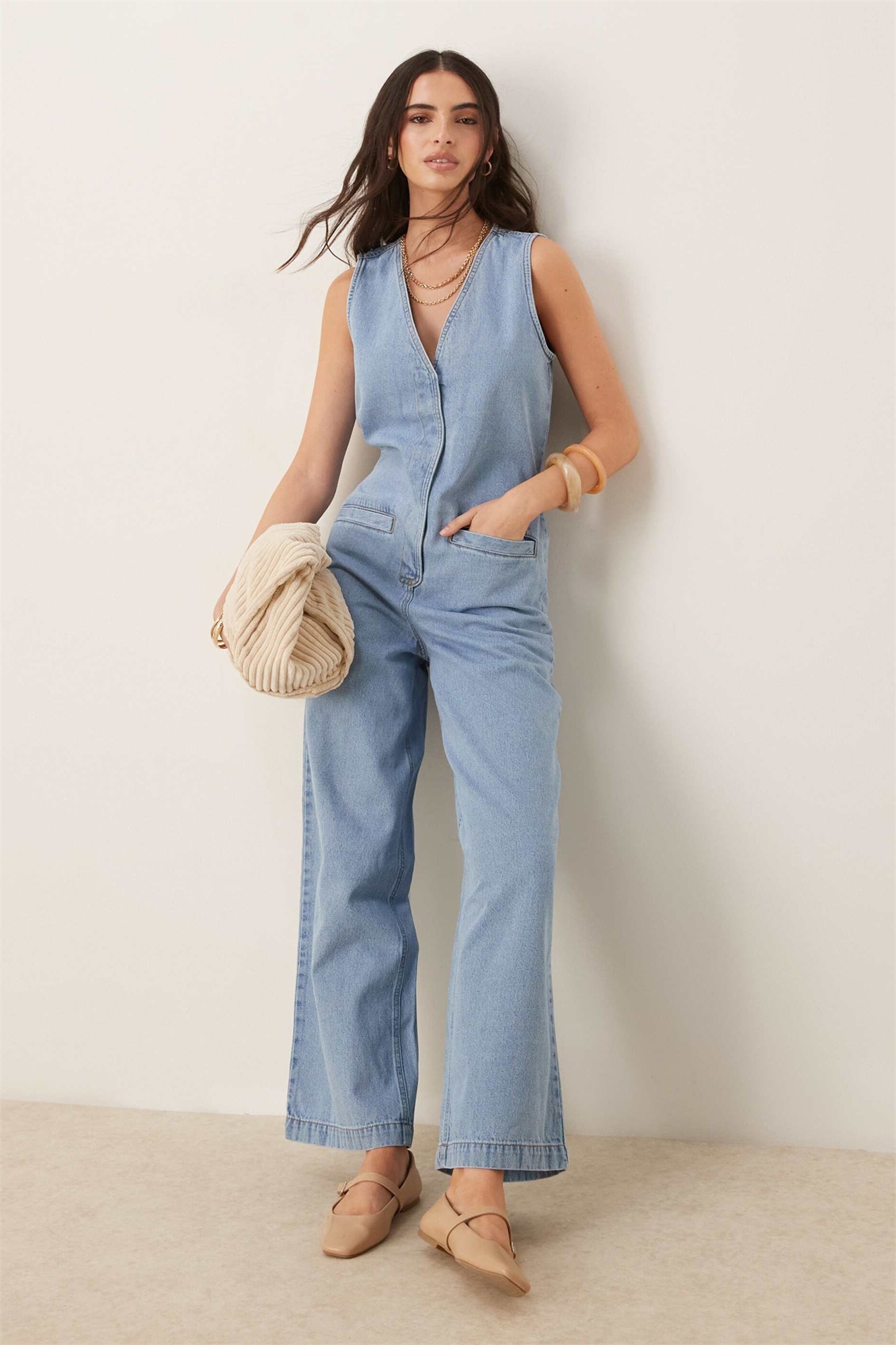 Неэластичный деним: светло-голубой оттенок Основной материал: 100% хлопок.