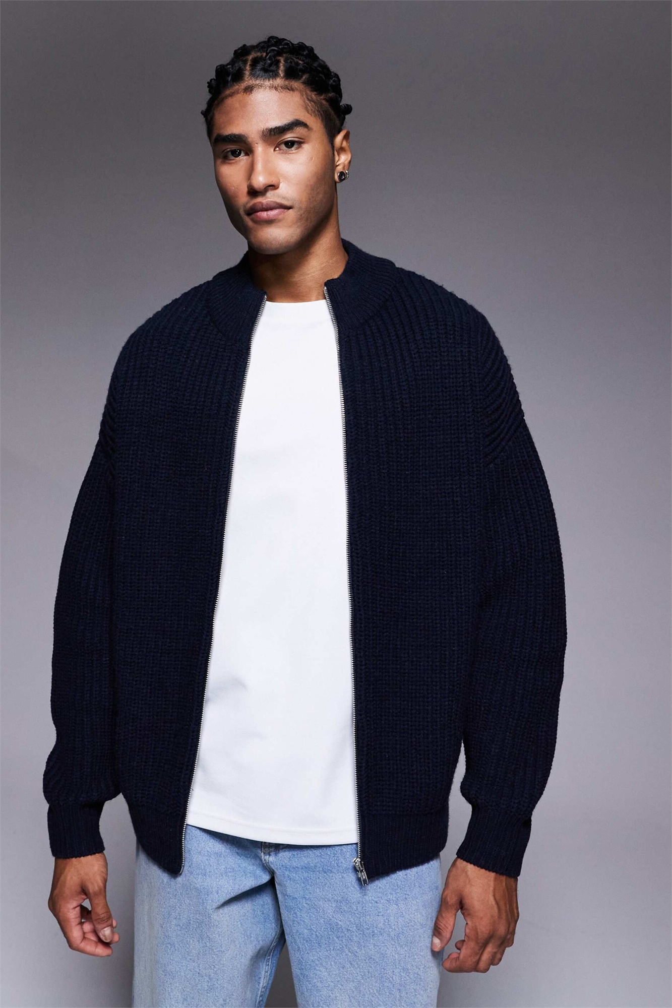 Кардиган свободного кроя с воротником-воронкой и застежкой-молнией