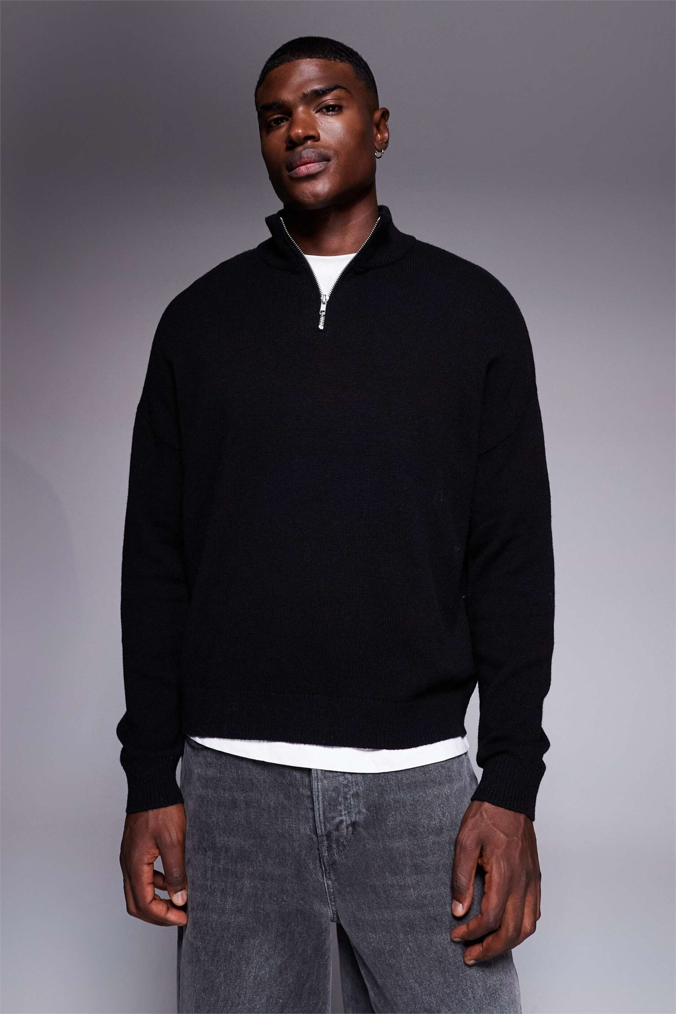 Свитер из овечьей шерсти крупной вязки с полузастежкой-молнией