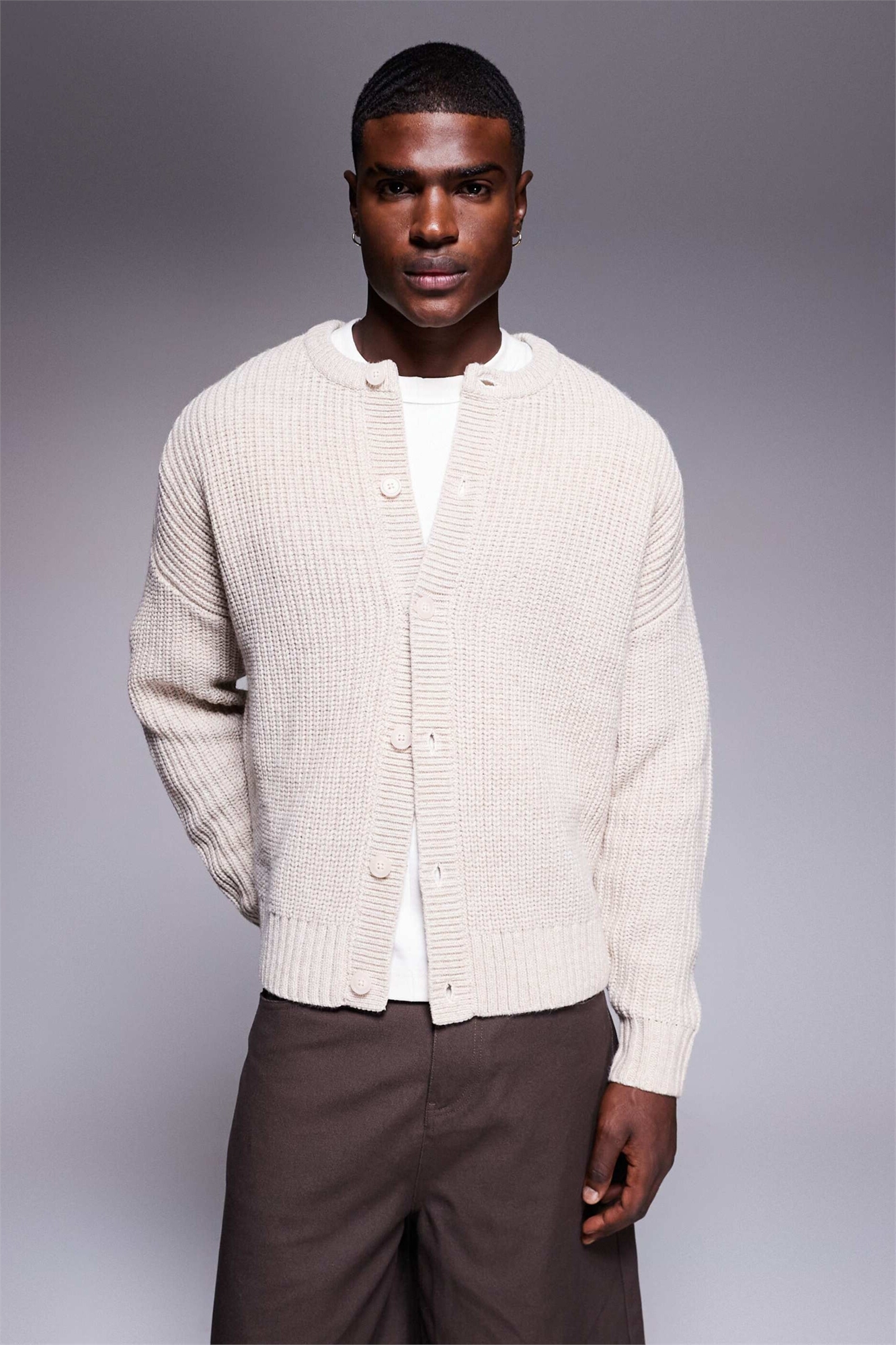 Кардиган из плотного трикотажа свободного прямого кроя с круглым вырезом