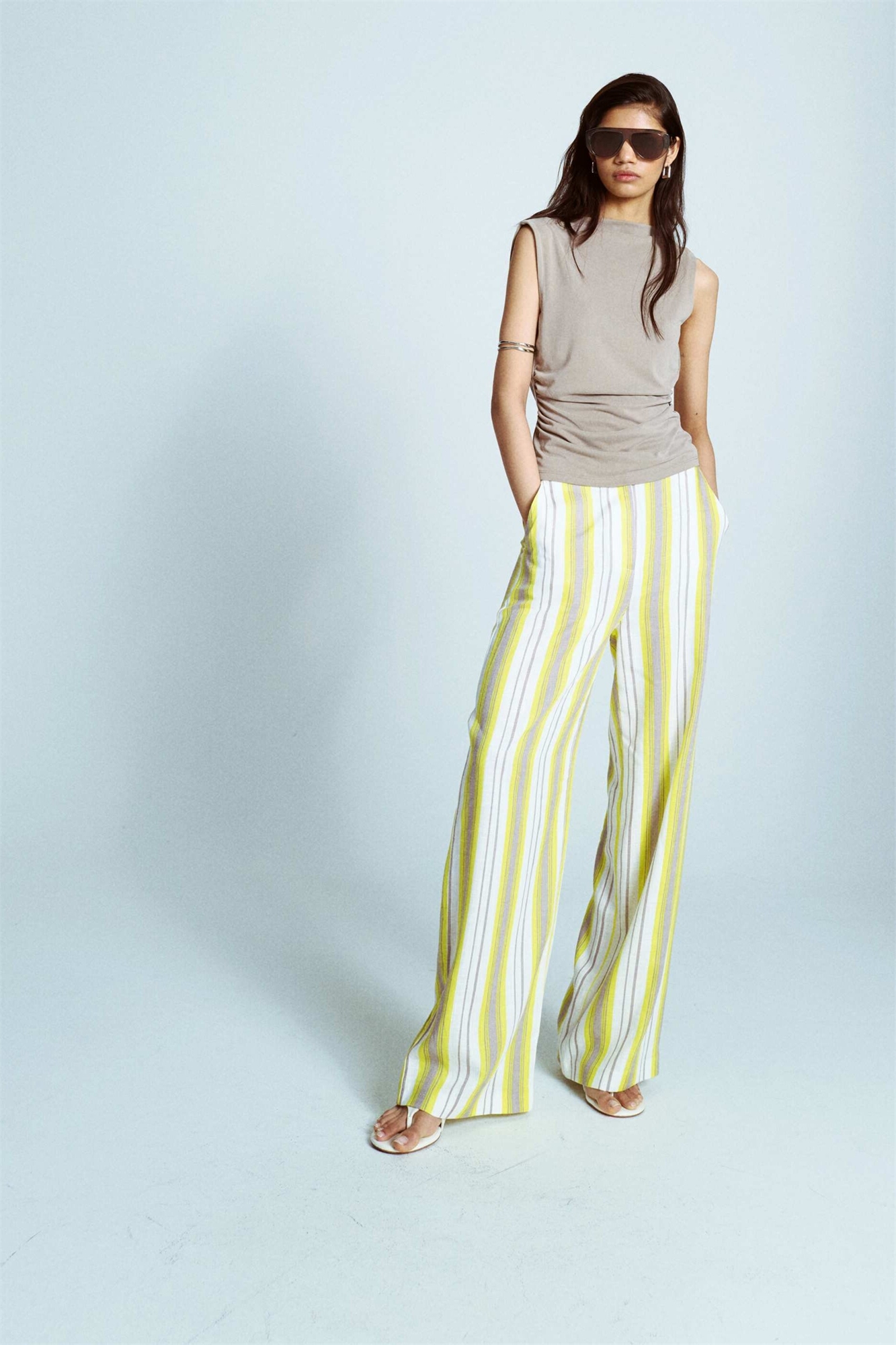 Изготовлено из льна, дышащей ткани с неровной текстурой. Основной материал: 87% вискоза, 13% лен, подкладка: 83% полиэстер, 17% хлопок.