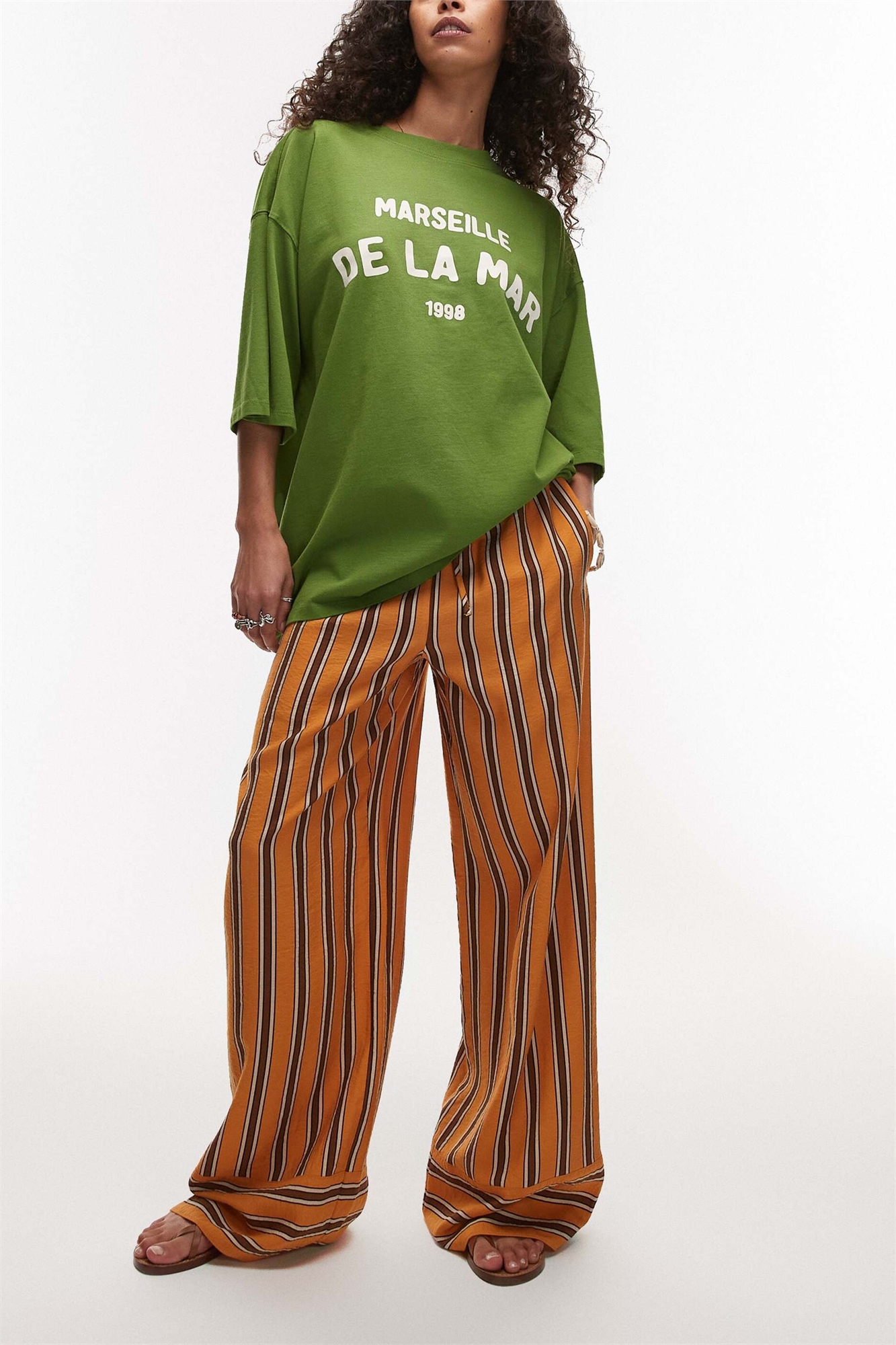 Прямой крой, атласный оранжевый цвет с шоколадными полосками