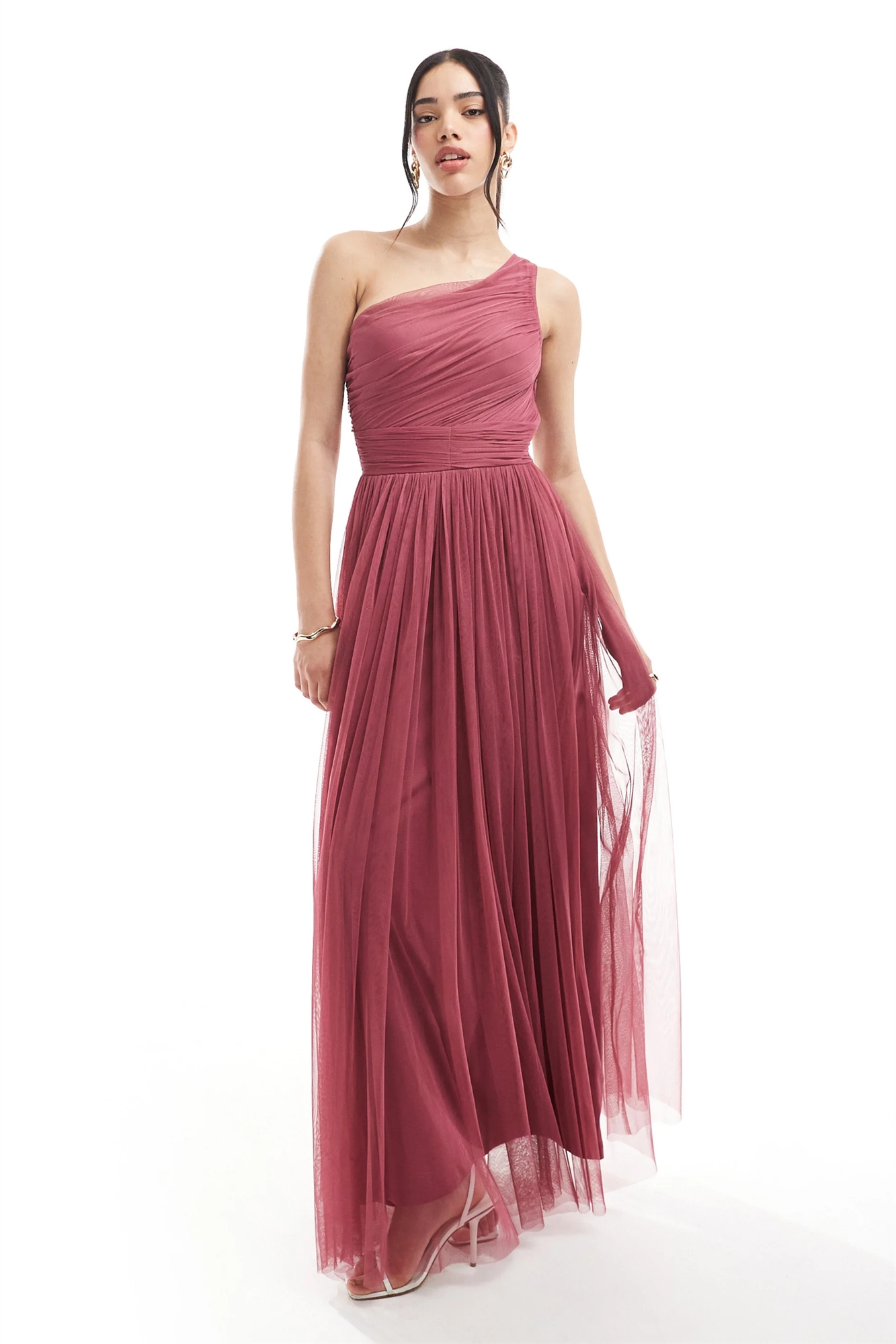 Макси-платье из тюля на одно плечо для подружки невесты