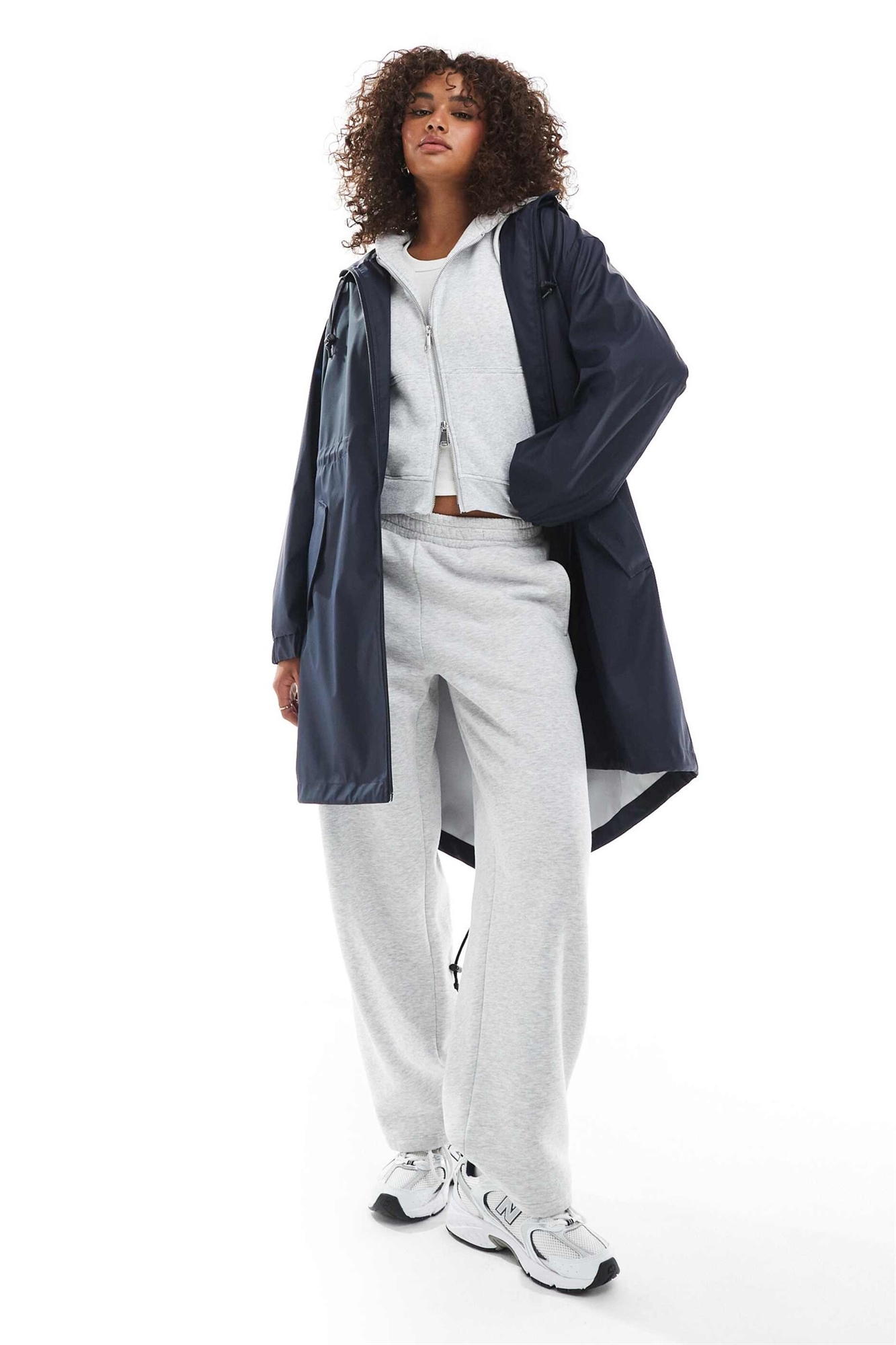 Контрастная деталь: прорезиненная дождевая куртка темно-синего цвета