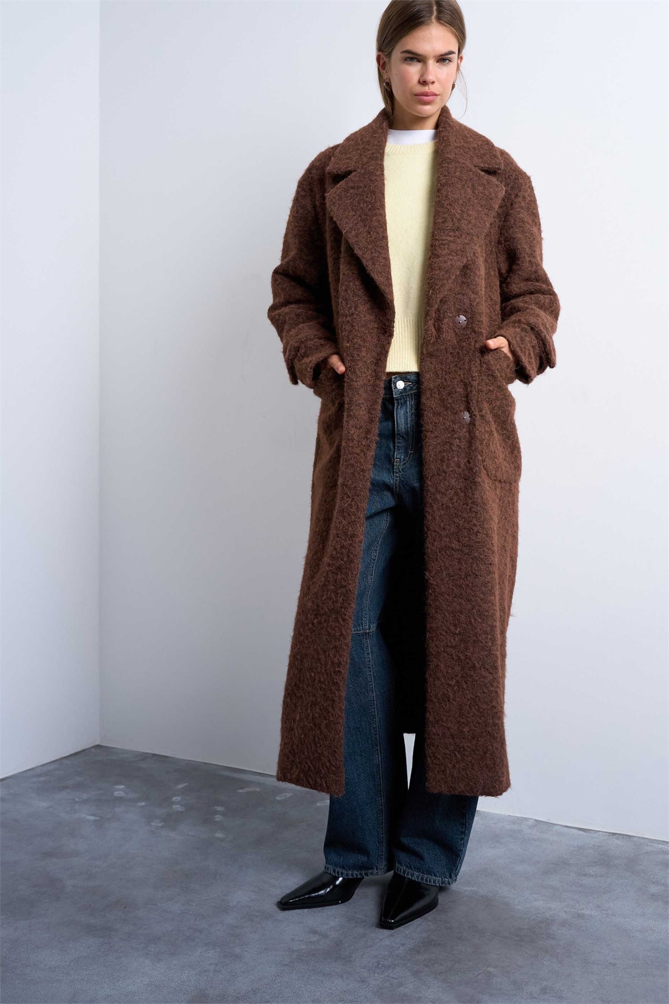 Пальто-лонглайн с мягким ворсом без подкладки