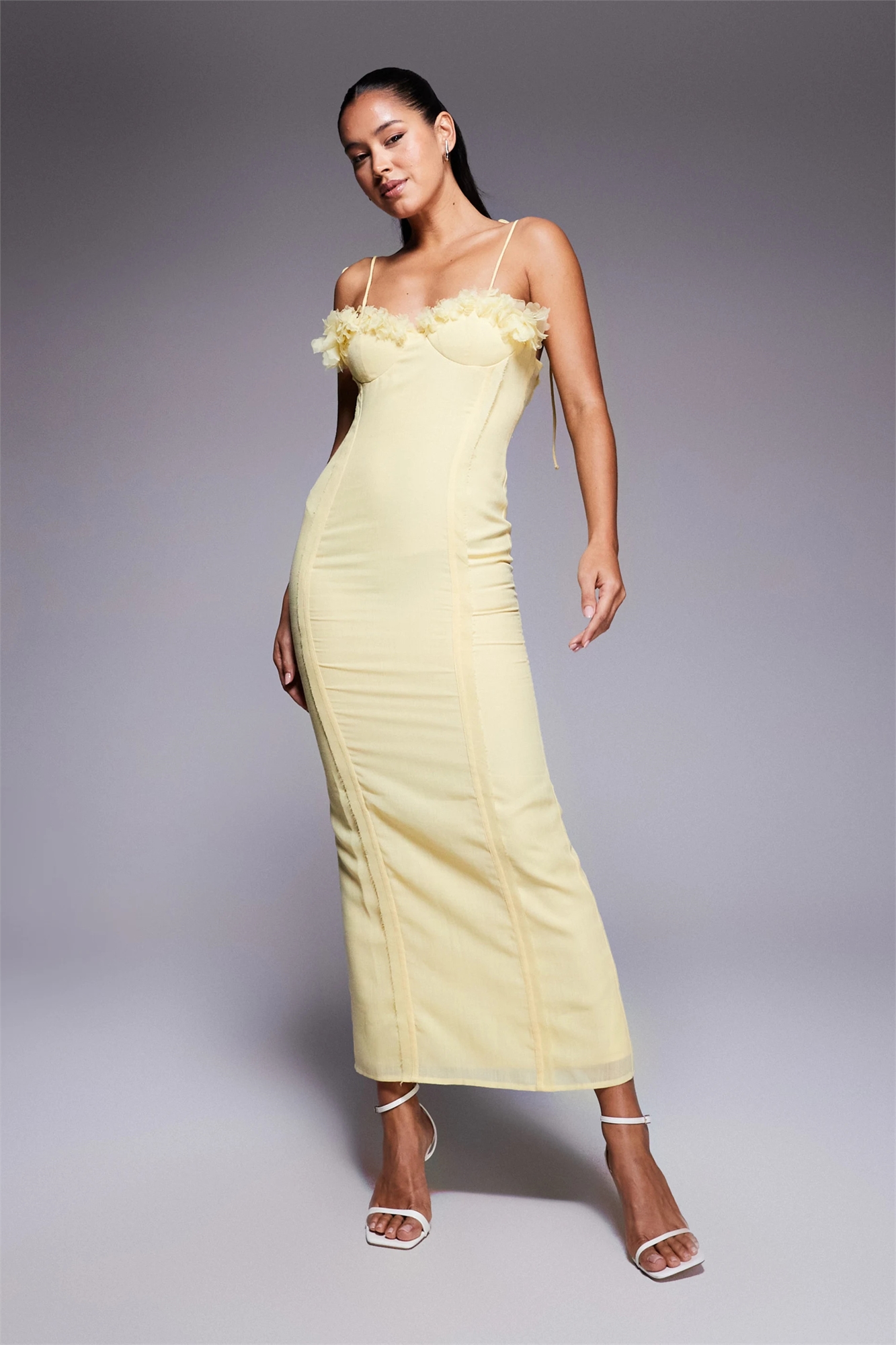 Платье средней длины с 3D-узором в виде букета цветов и корсетной линией, имитирующее лен