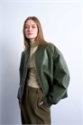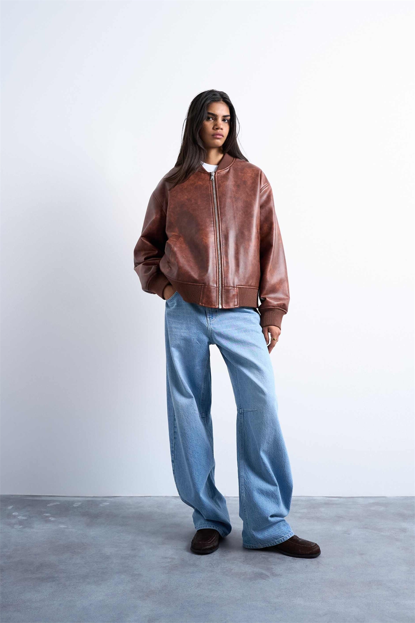 Бомбер из искусственной кожи с эффектом винтажной потертости, свободного кроя и без воротника