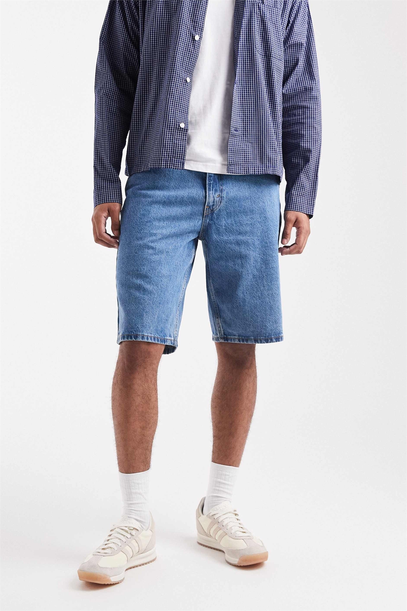 Джинсовая ткань без эластана: оттенок «средне-синий». Основной состав: 100% хлопок.