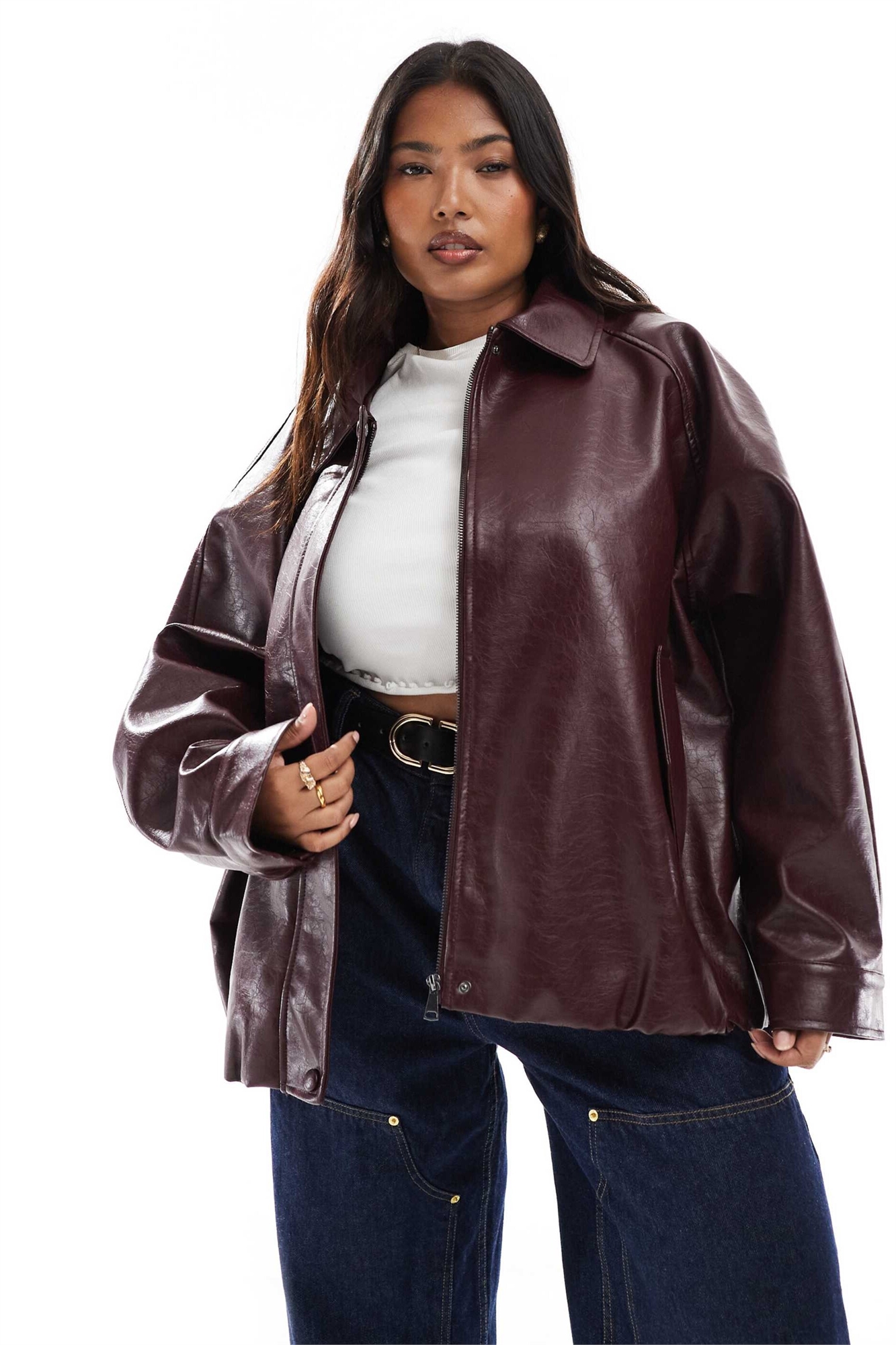 ASOS DESIGN: бомбер свободного кроя с эффектом кожи для полных