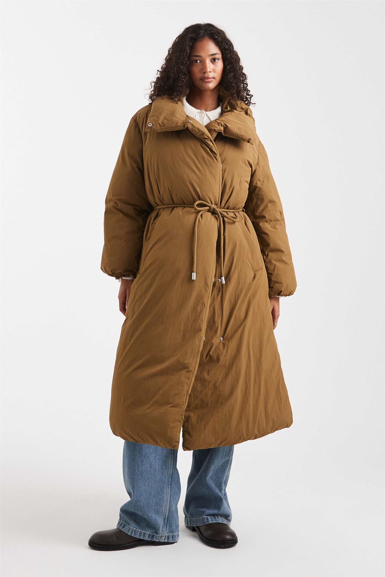 Пуховик с удлиненным кроем и воротником-воронкой
