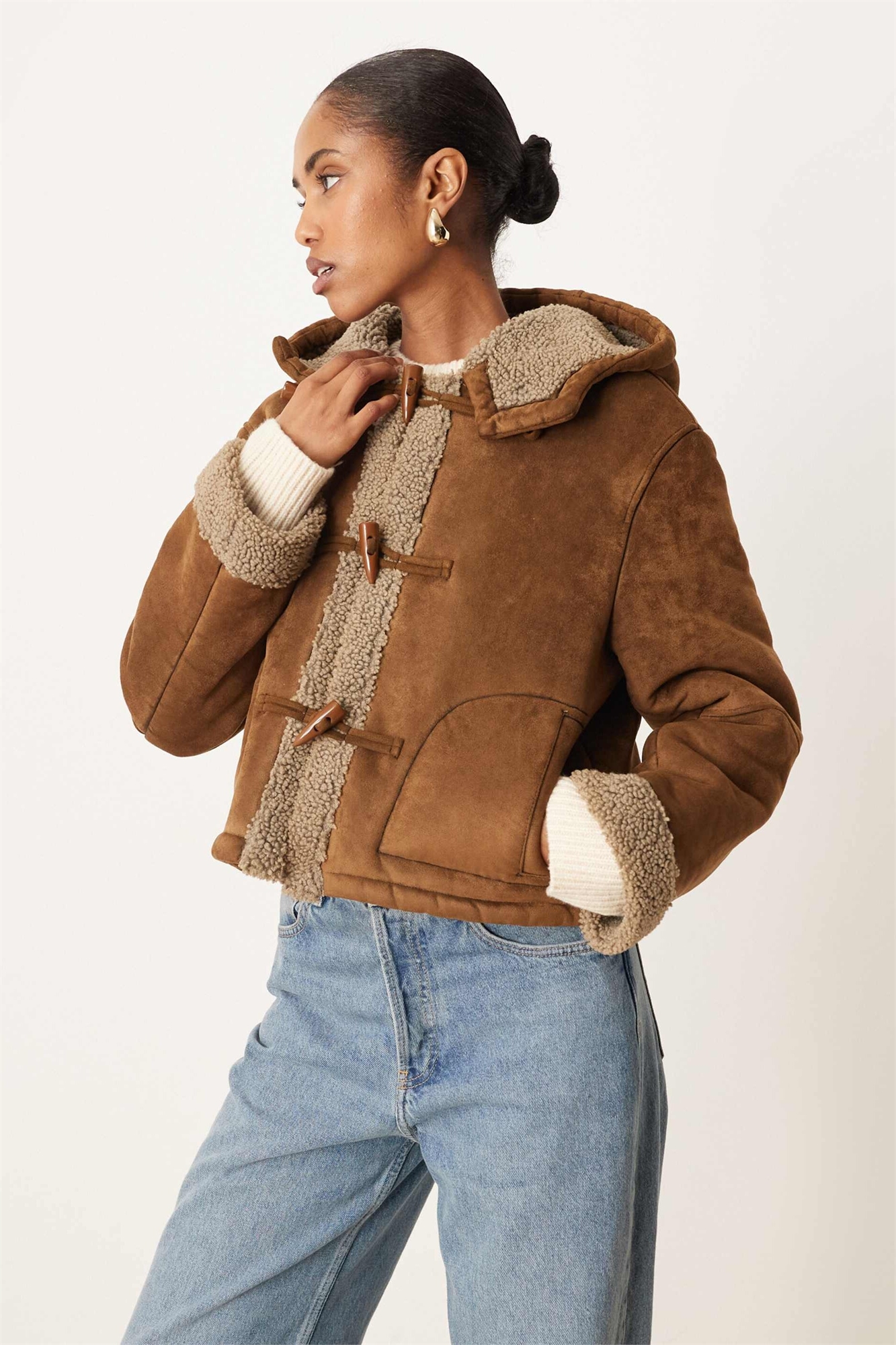 Мягкая текстурированная ткань Лицевая сторона: 96% полиэстер, 4% эластан, искусственный мех: 100% полиэстер.