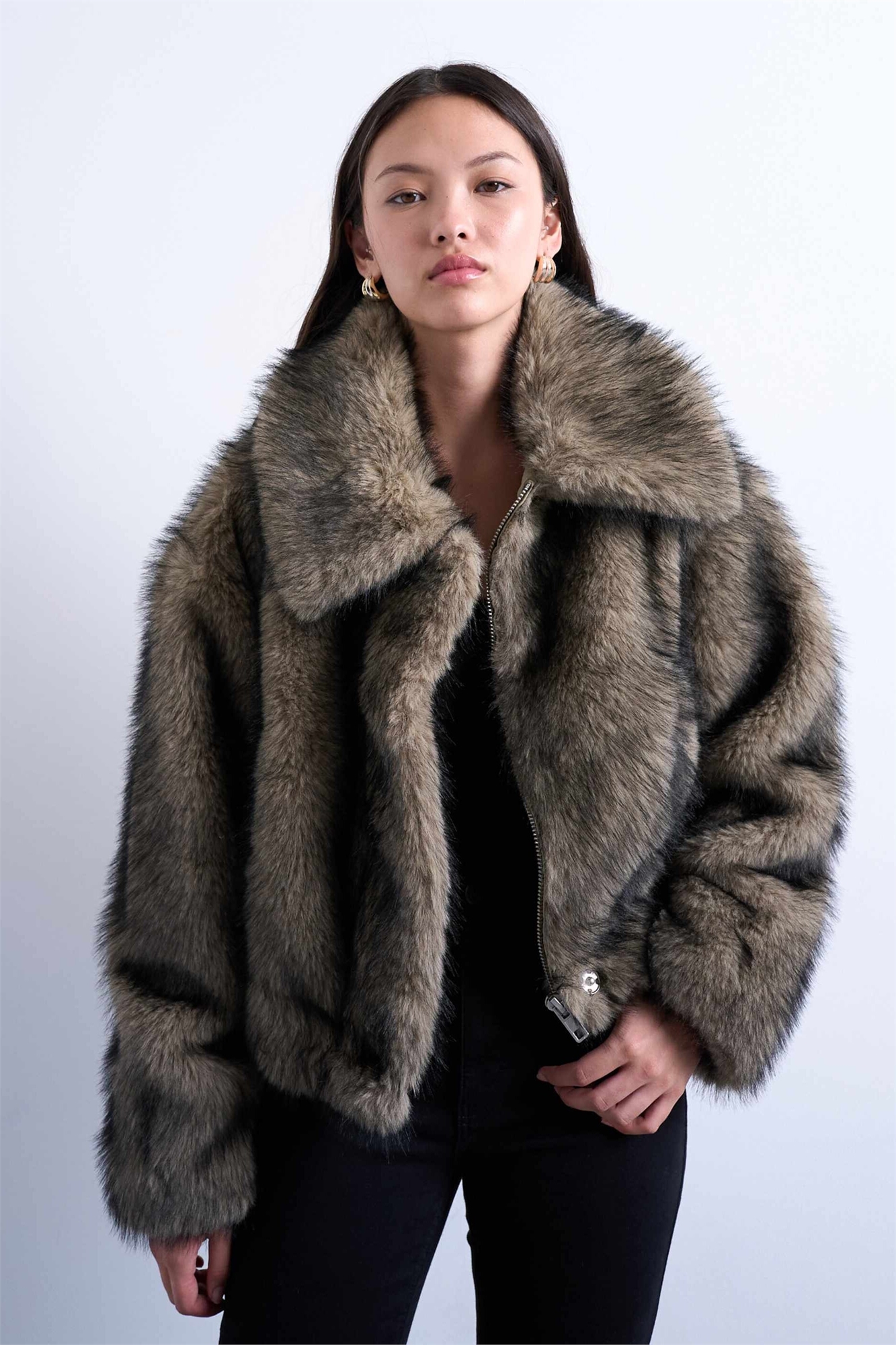 Бомбер из искусственного меха на молнии