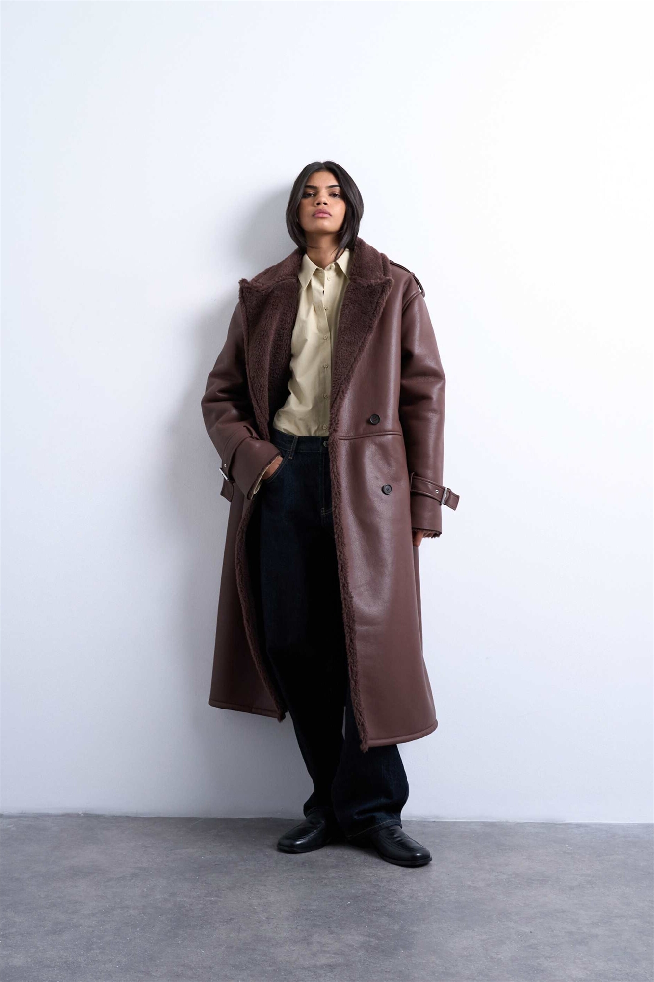 Пальто-борг в стиле «авиатор» с длинным передом и широким воротником