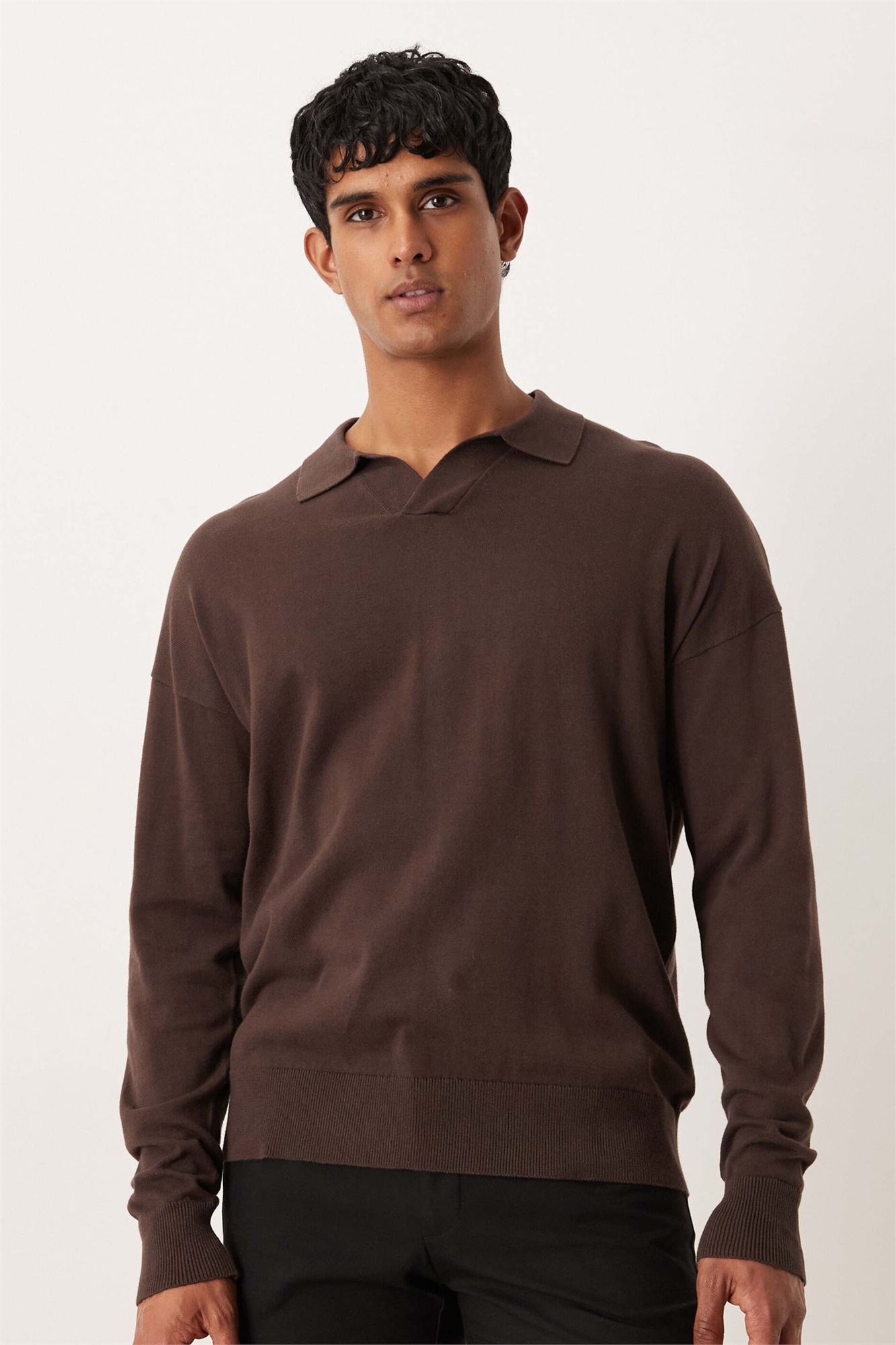 Полуформальная трикотажная рубашка-поло с длинными рукавами и вырезом