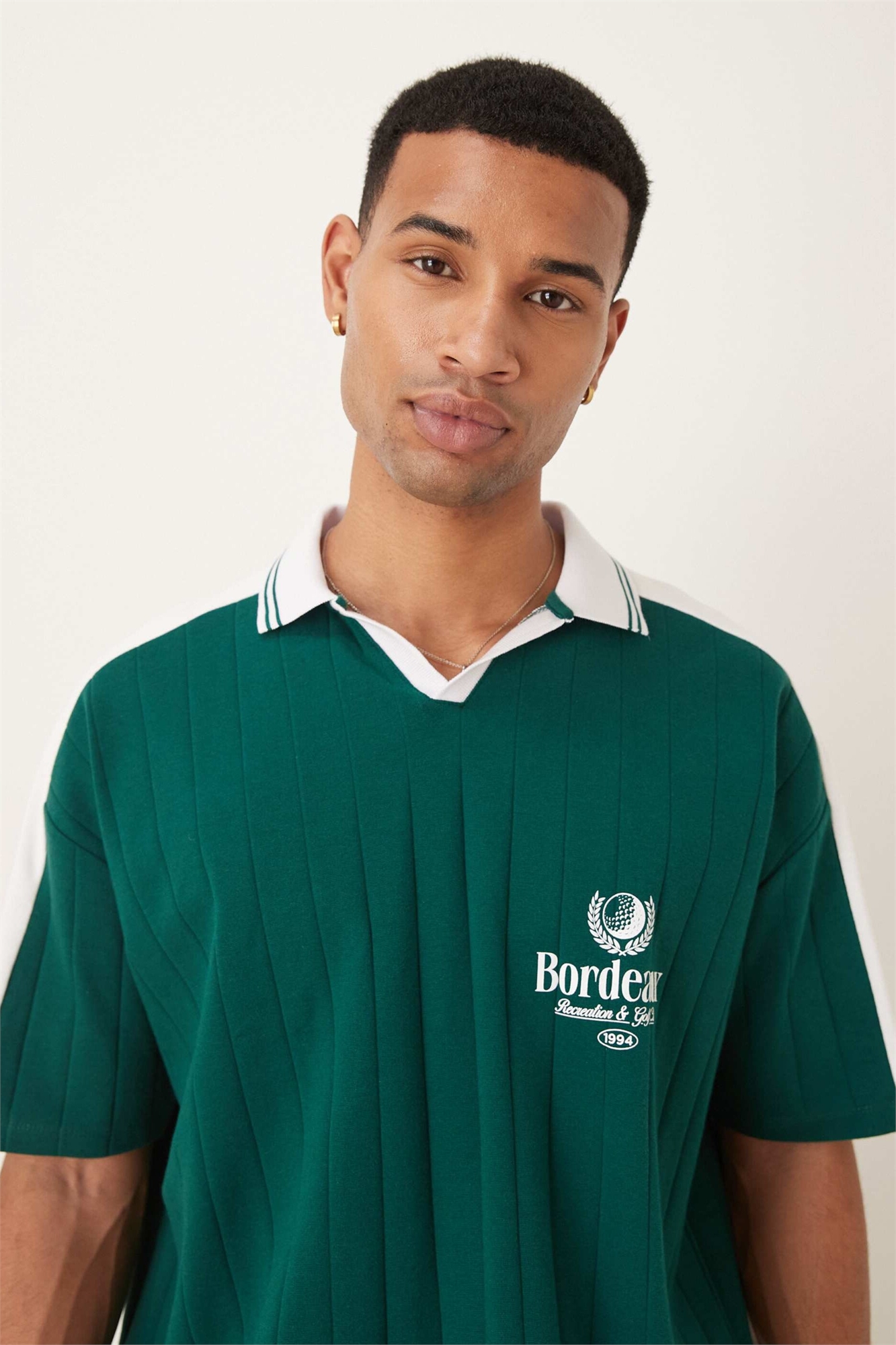 Поло свободного кроя с спортивным рисунком на груди
