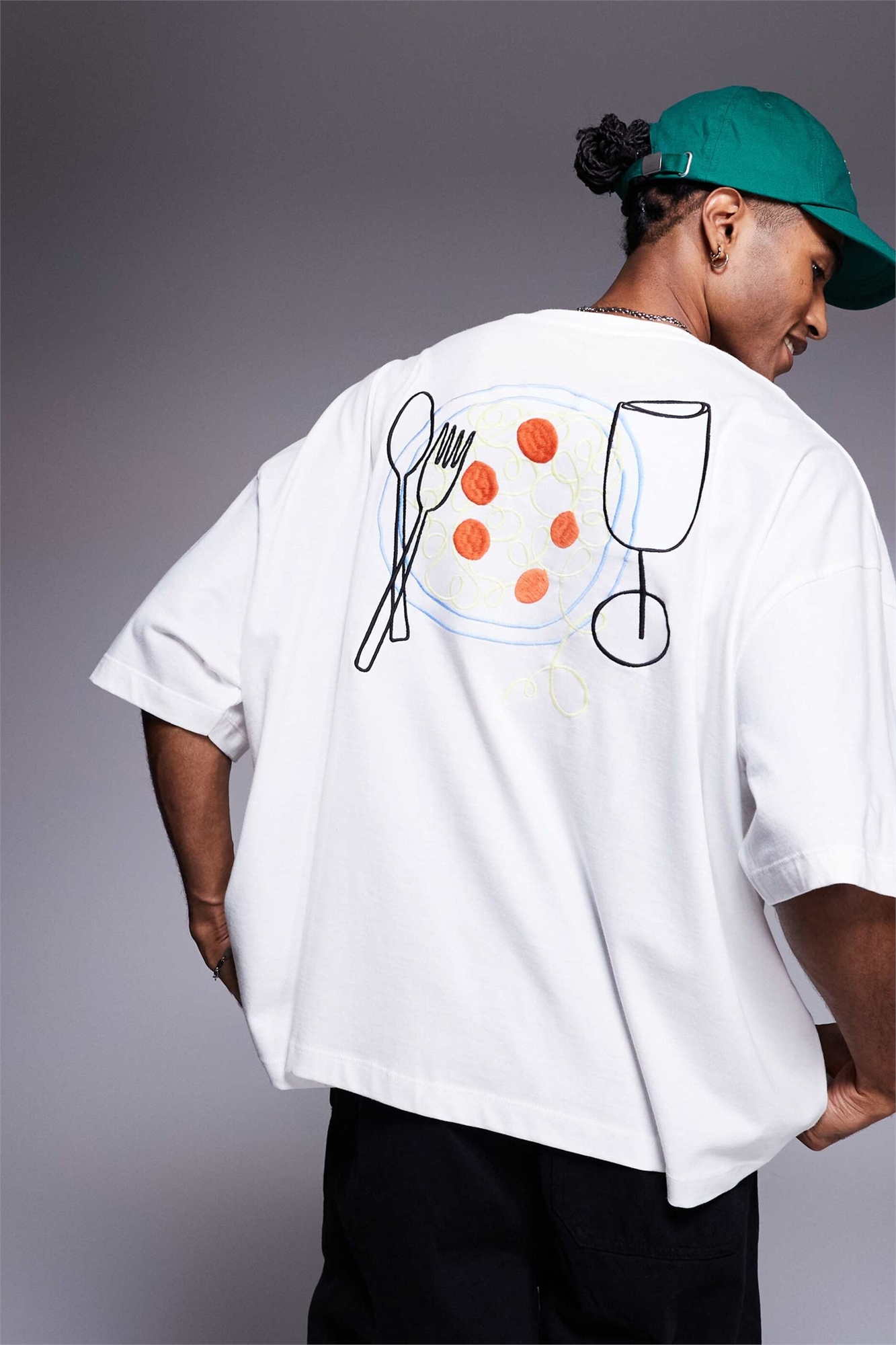 Прямая футболка свободного кроя с вышивкой в виде еды