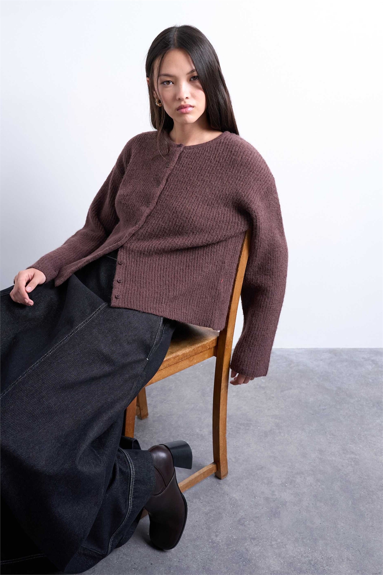 Вязаный кардиган свободного кроя с простым ребристым узором