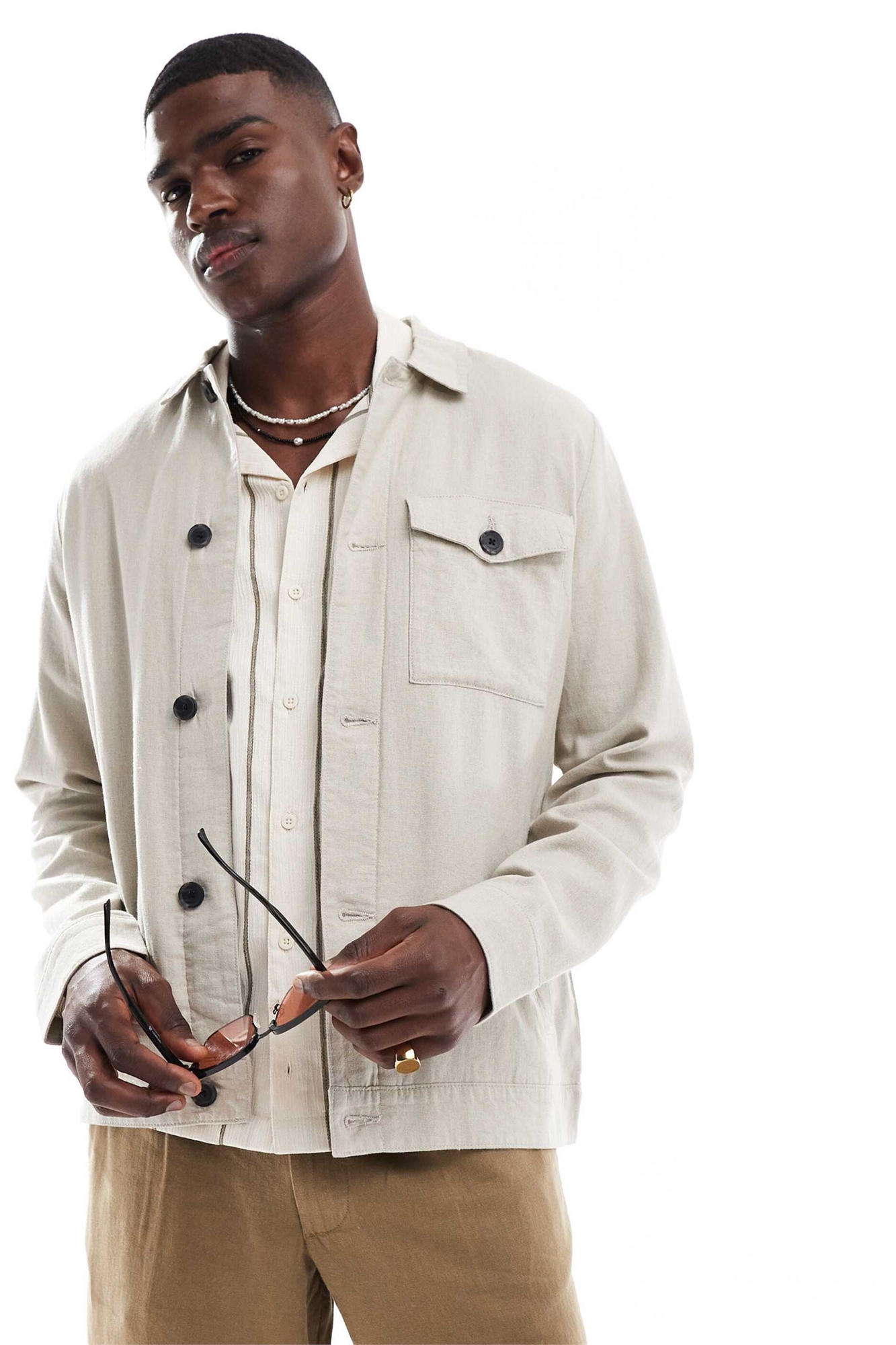 Куртка с пуговицами из ткани с высоким содержанием льна