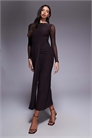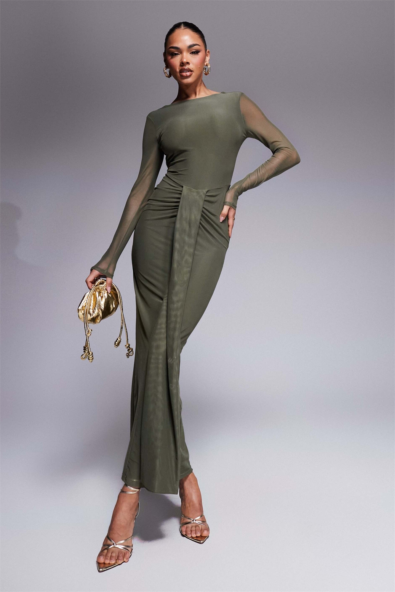 Макси-платье из сетчатого материала с длинными рукавами, V-образным вырезом, открытой спиной и поясом