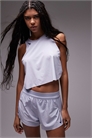 Спортивная одежда: гладкая и эластичная ткань. Использует технологию Nike Dri-FIT. Отводит пот от кожи, а затем вытягивает его из ткани, чтобы ускорить испарение. Сохраняет прохладу и сухость во время занятий. Основной материал: 100% полиэстер.