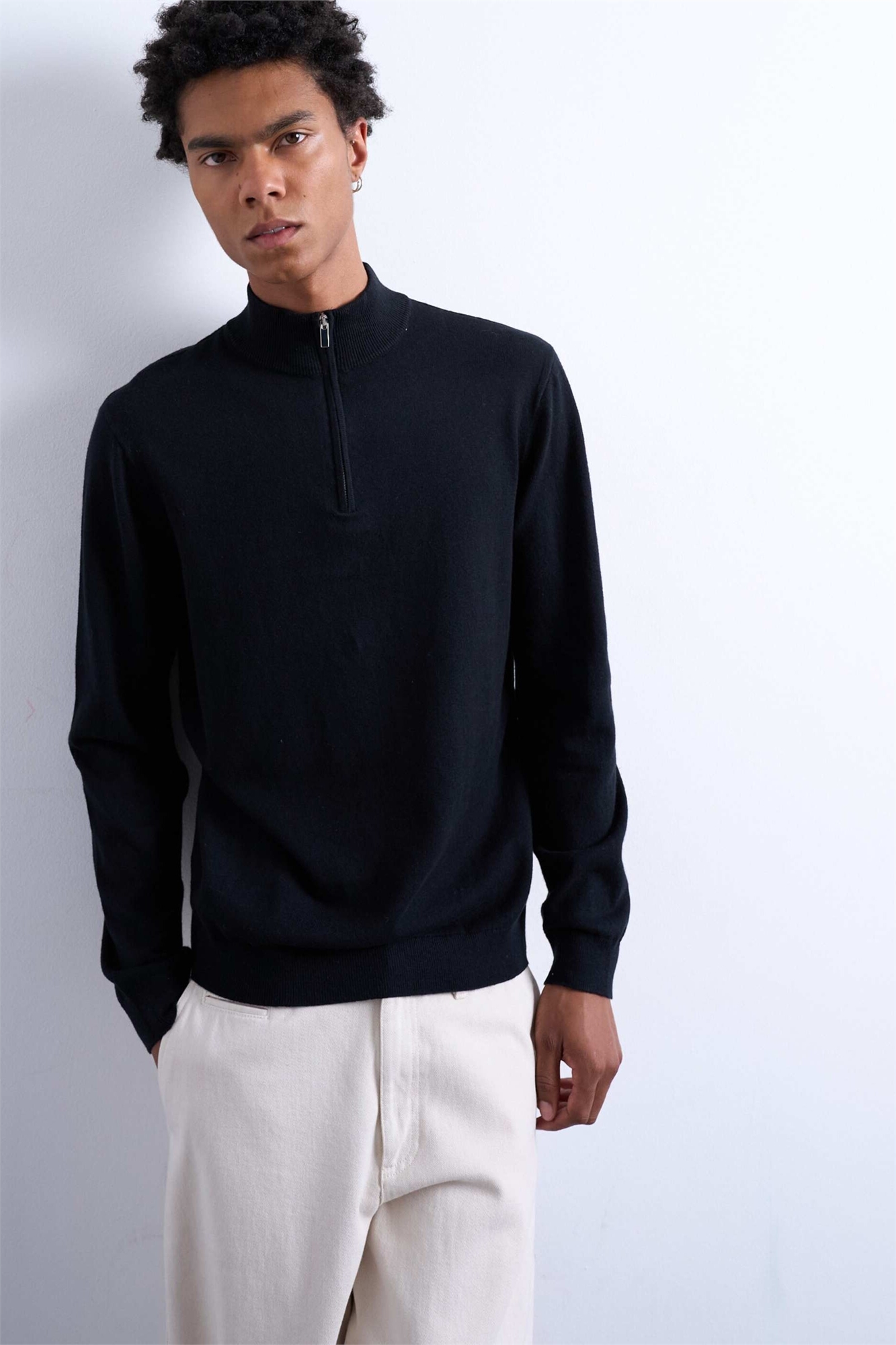 Незаменимый свитер с воротником-воронкой и застежкой-молнией на 1/4 длины