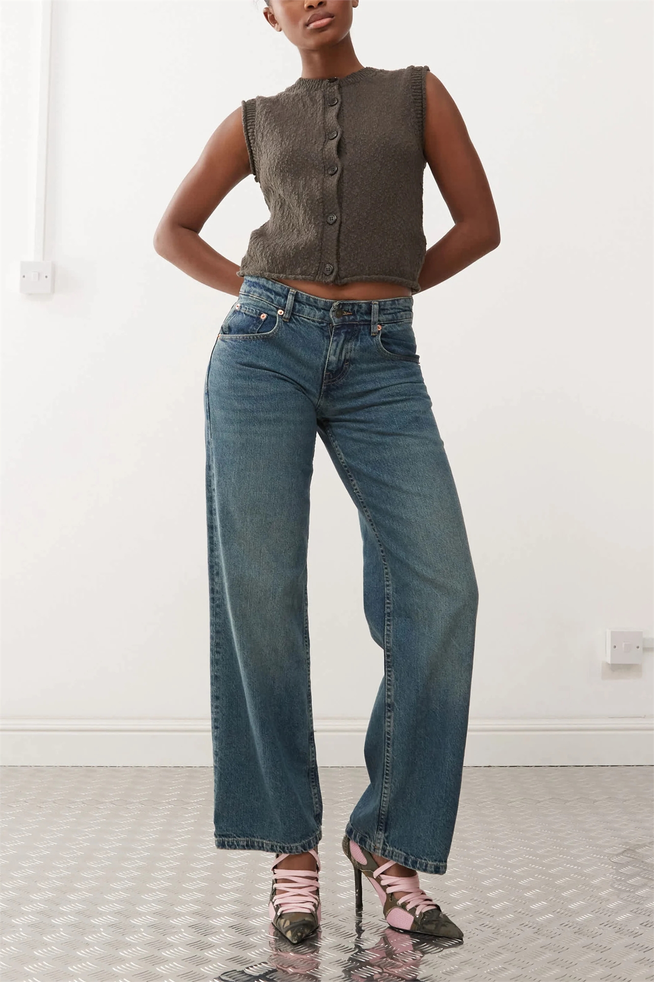 Джинсовая ткань без эластана: оттенок «средне-синий». Основной состав: 100% хлопок.