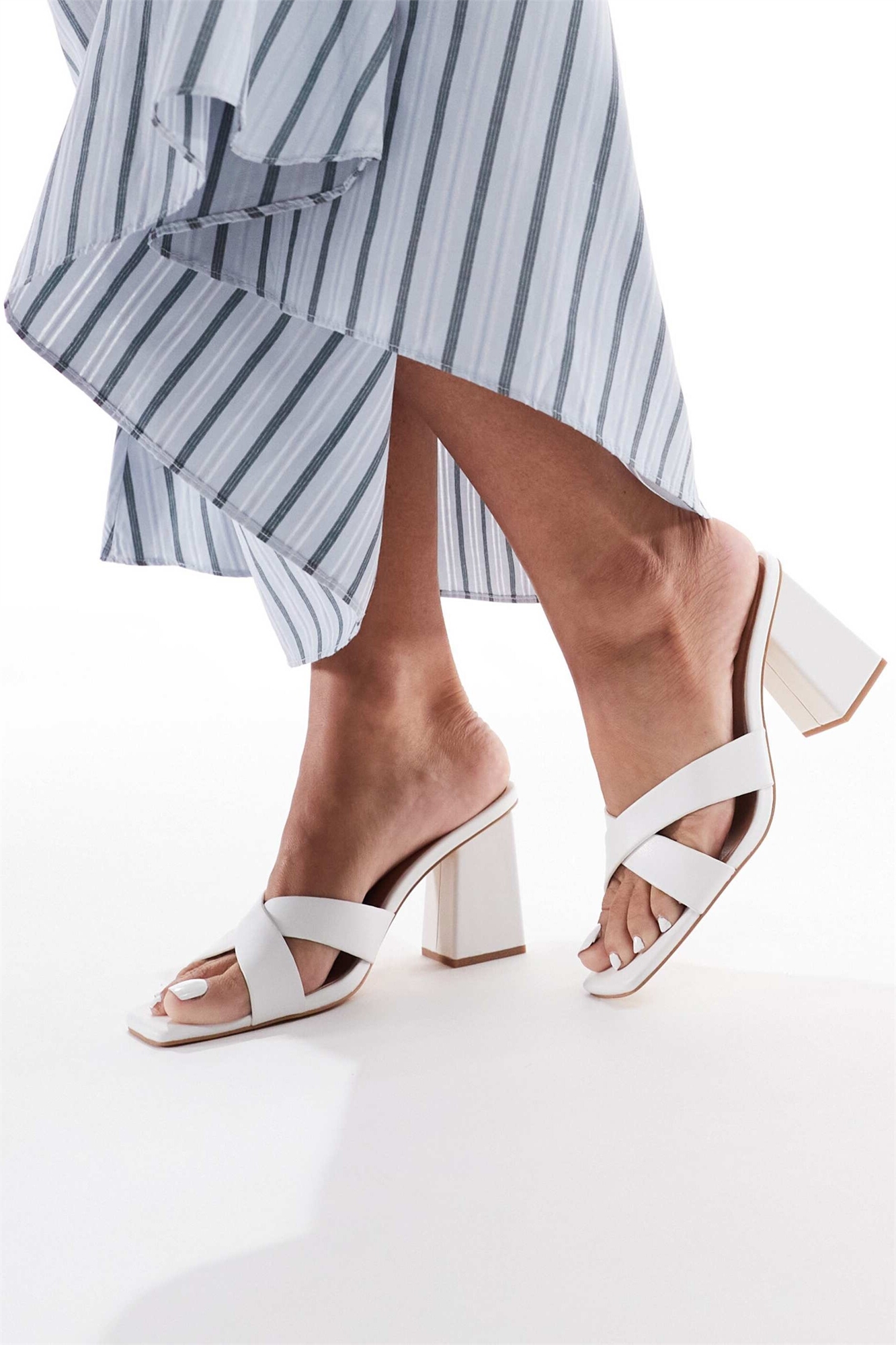 Босоножки-муле с перекрещивающимися ремешками и высоким каблуком