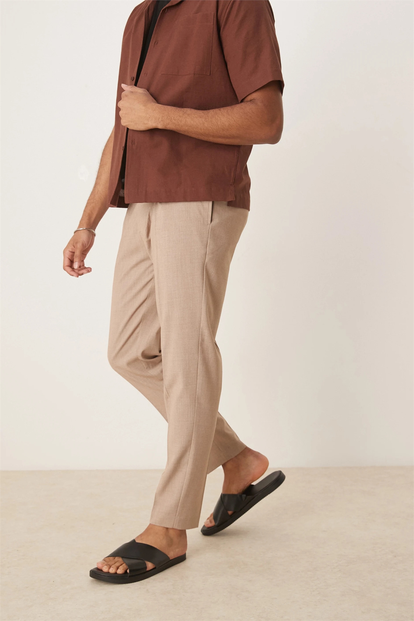 Стильные брюки зауженного кроя с складкой спереди