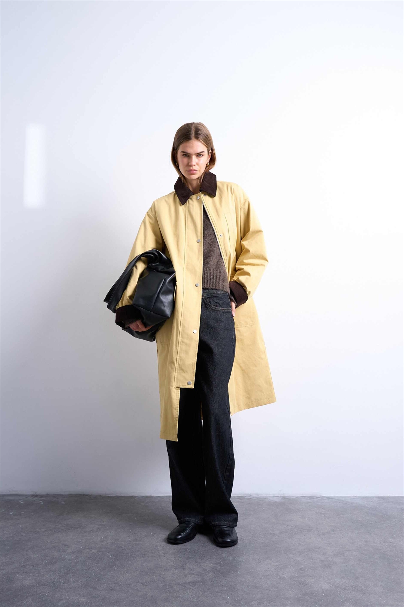 Рубашка-шэкет с контрастным воротником и удлиненным кроем