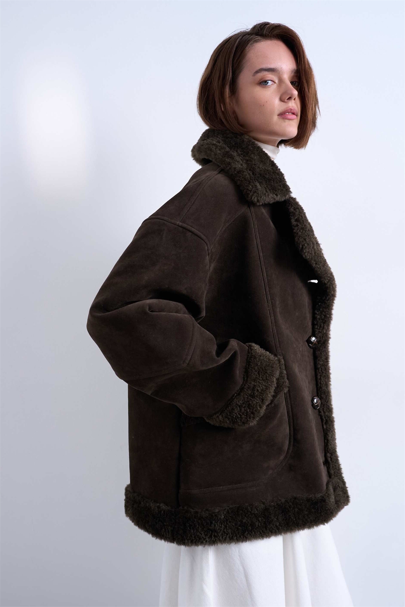Пальто-кардиган оверсайз из искусственной замши с меховой отделкой