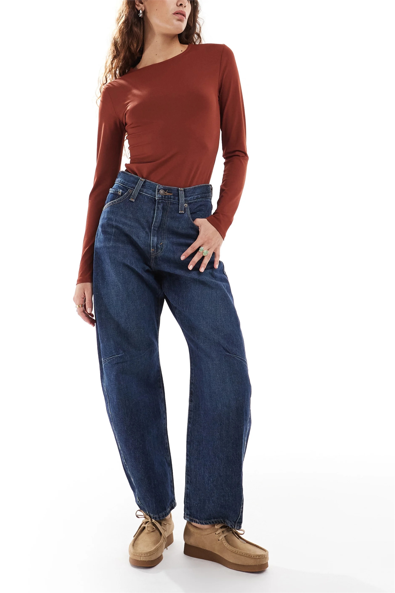 Рост модели: 174 см / 5 футов 8,5 дюйма. На модели: размер 26 по ширине, 29 по длине