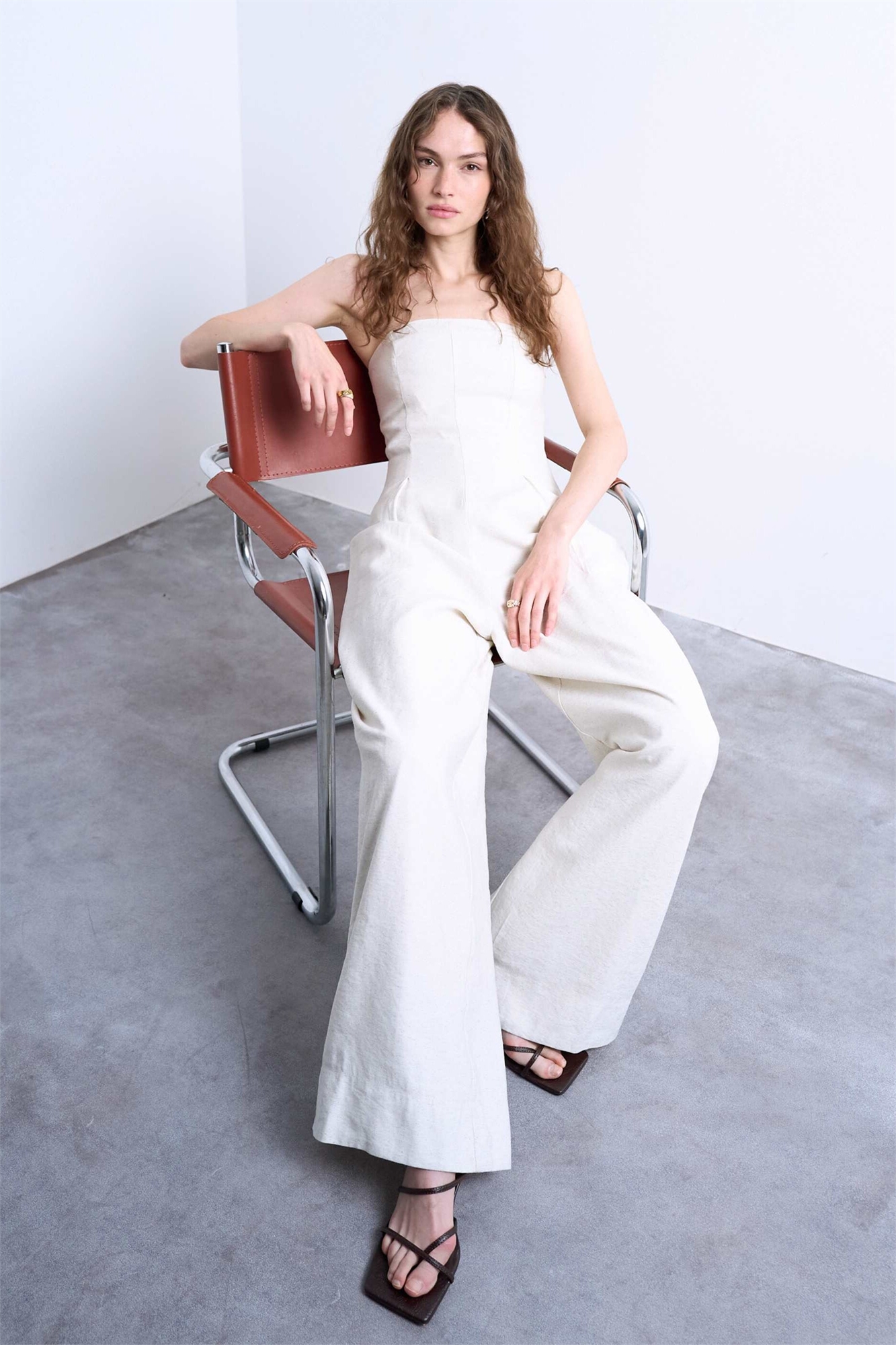 Комбинезон из льна с широкими брючинами и швами