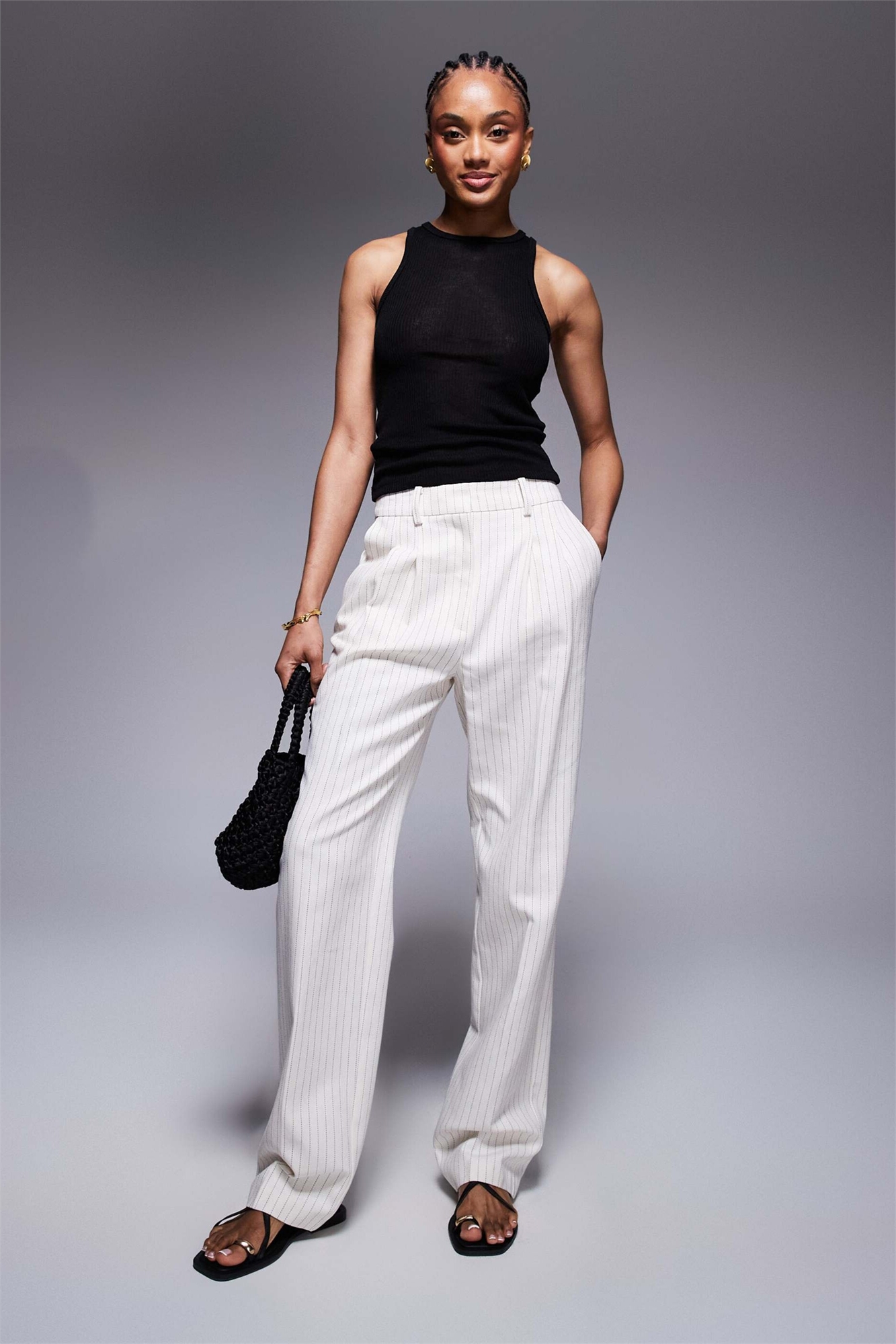 Высокие брюки классического кроя с прямыми брючинами и складками