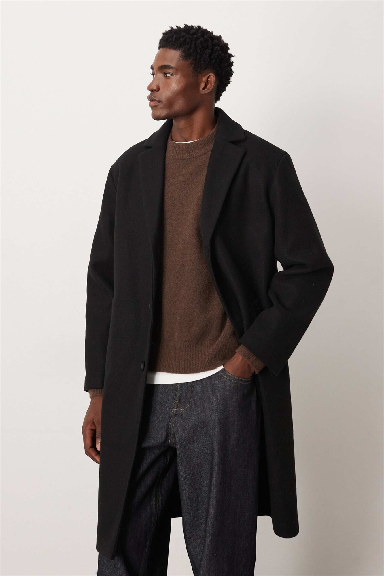 Длинное пальто с эффектом шерсти в стиле кэжуал