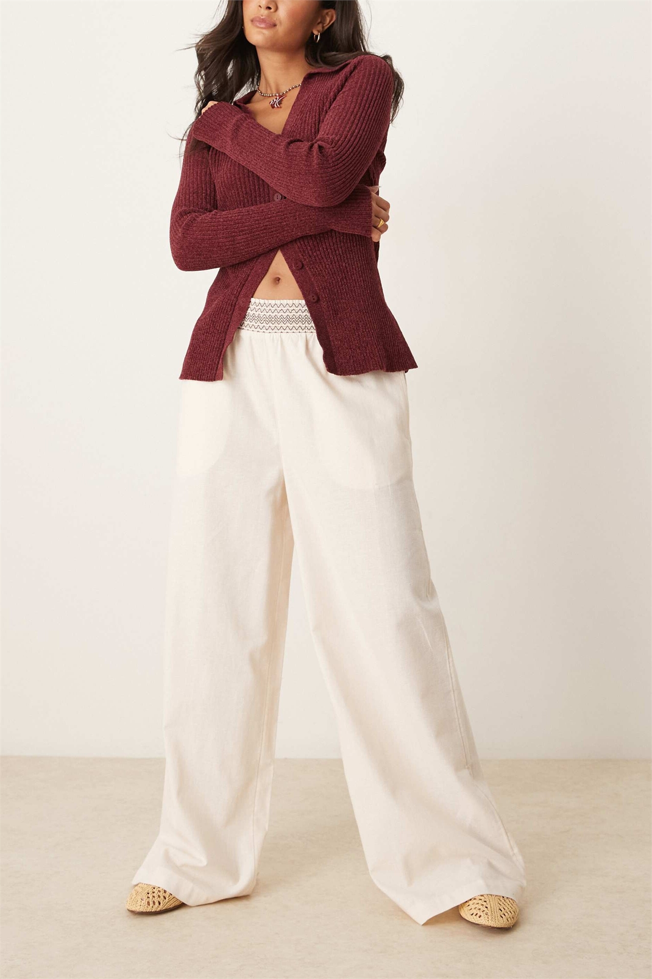 Брюки-кюлоты из смешанного льна с широкими брючинами и сборками на талии
