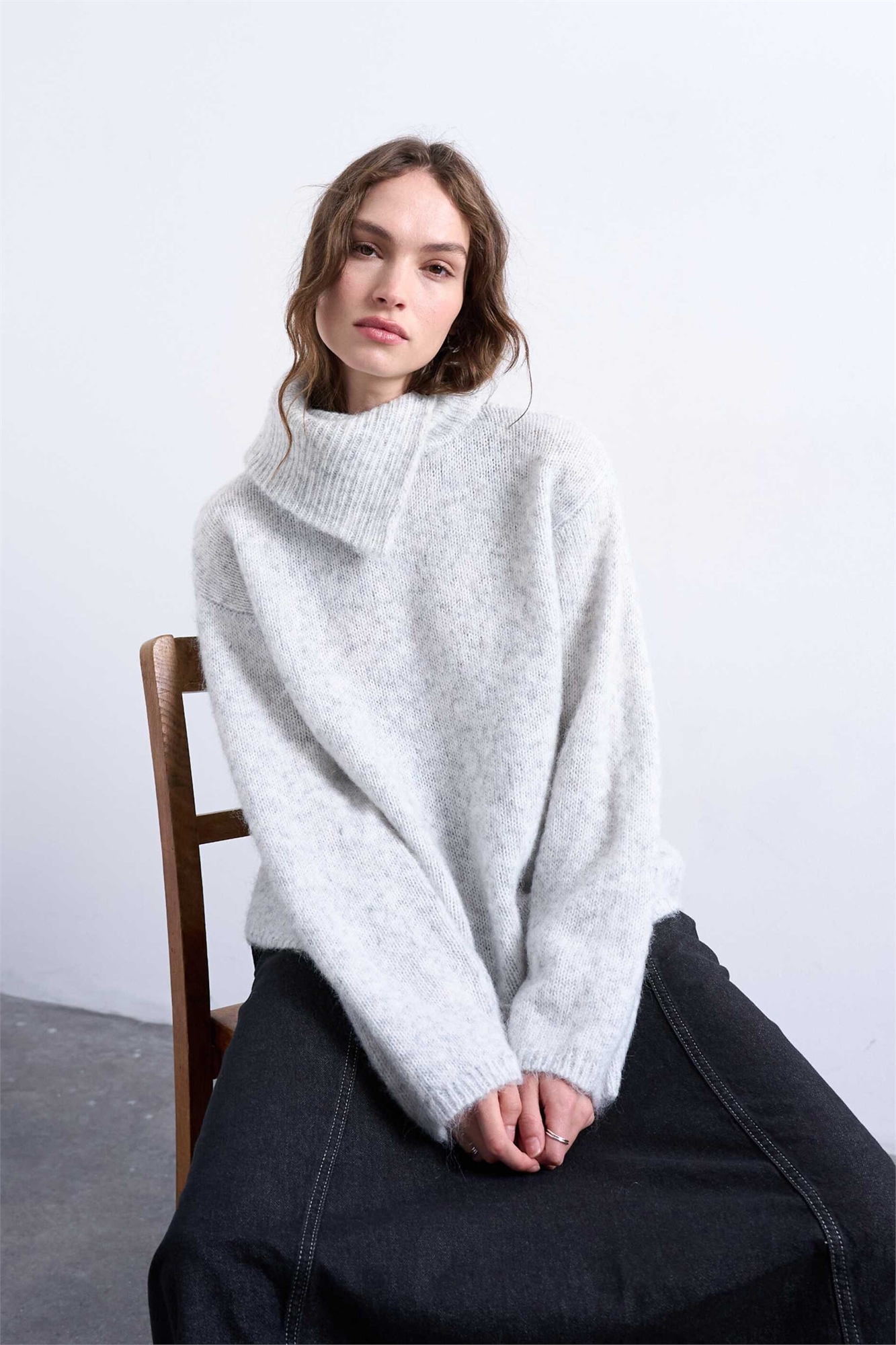 Свитер с воротником-воронкой из трикотажа
