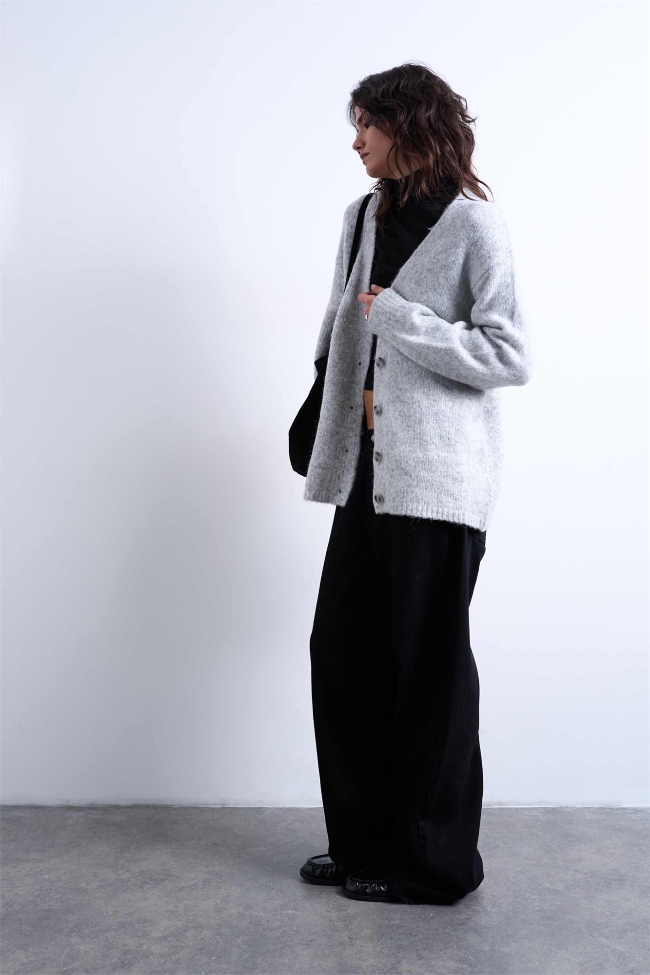Простой вязаный кардиган удлиненного кроя