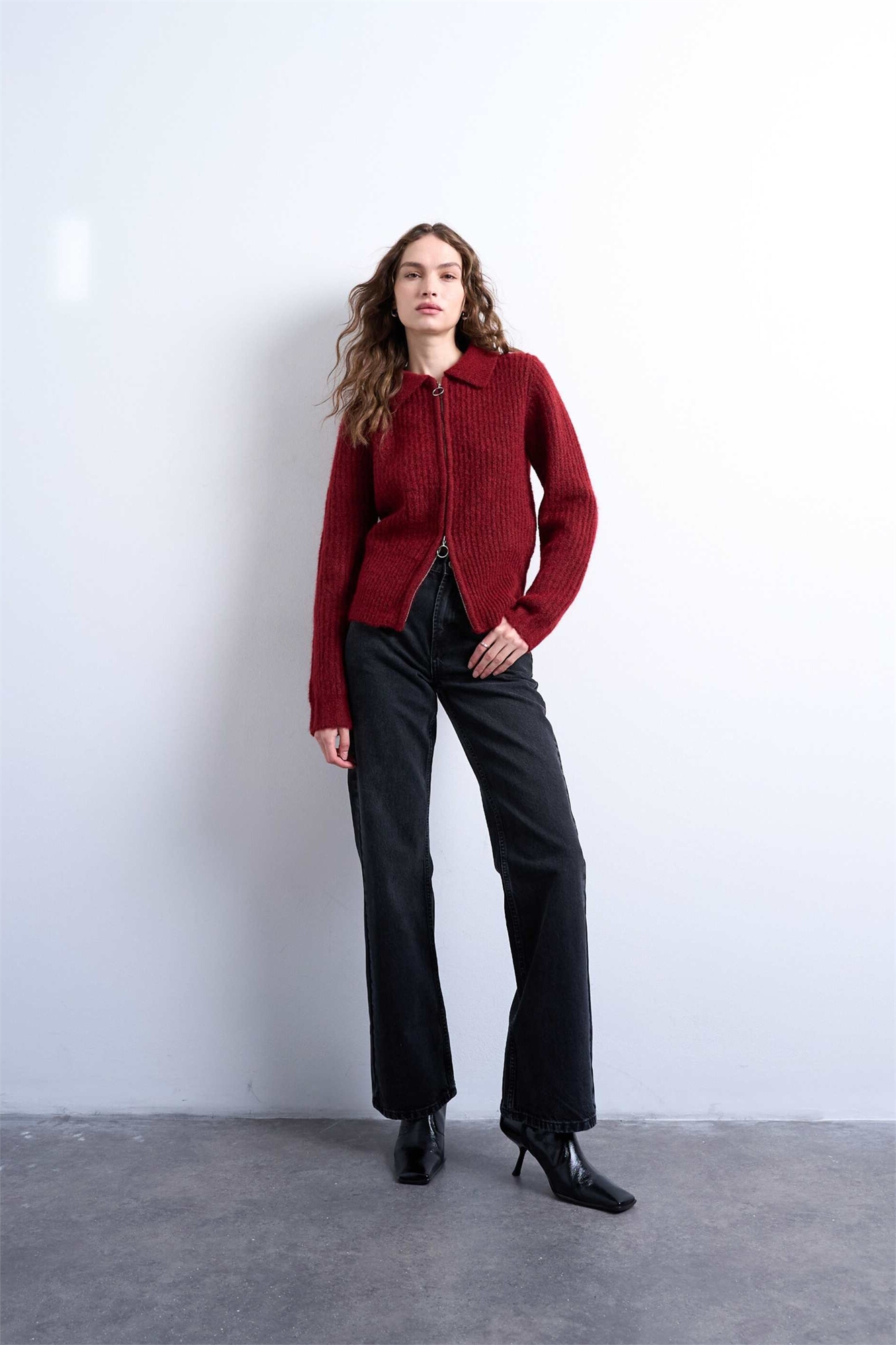 Кардиган с вязаным воротником и застежкой-молнией