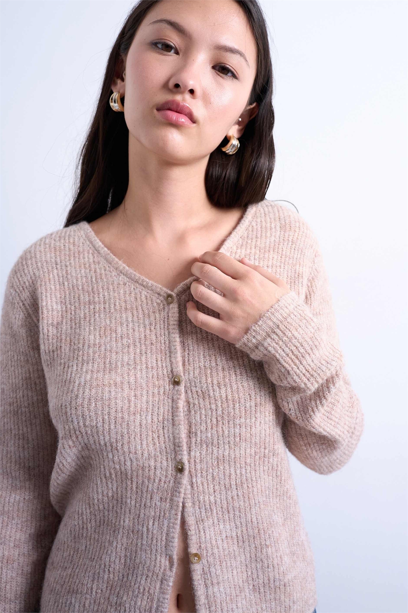 Вязаный кардиган с V-образным вырезом и ребристой отделкой
