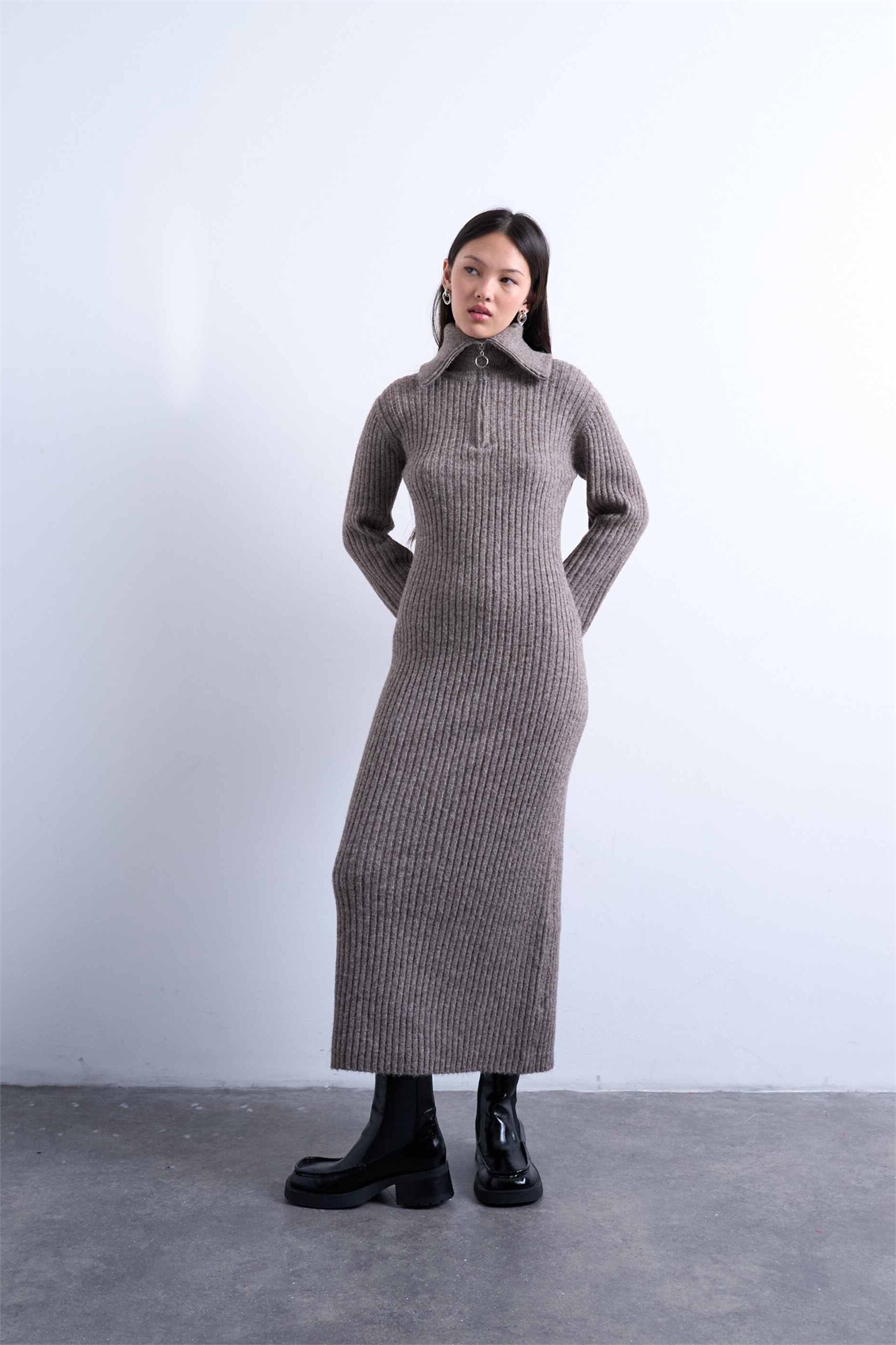 Трикотажное платье средней длины с кольцевой застежкой-молнией