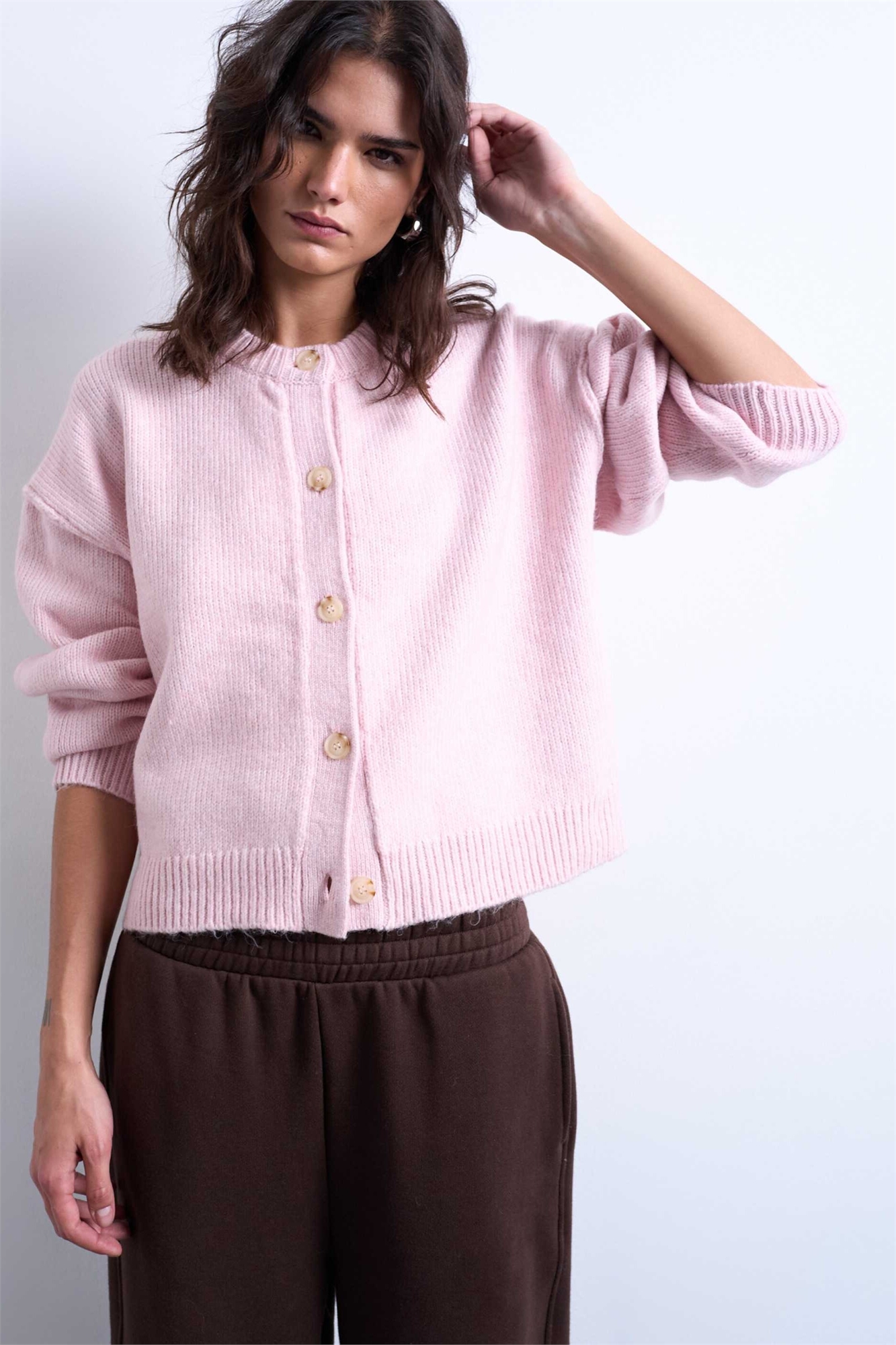 Кардиган свободного кроя с открытыми швами из трикотажа
