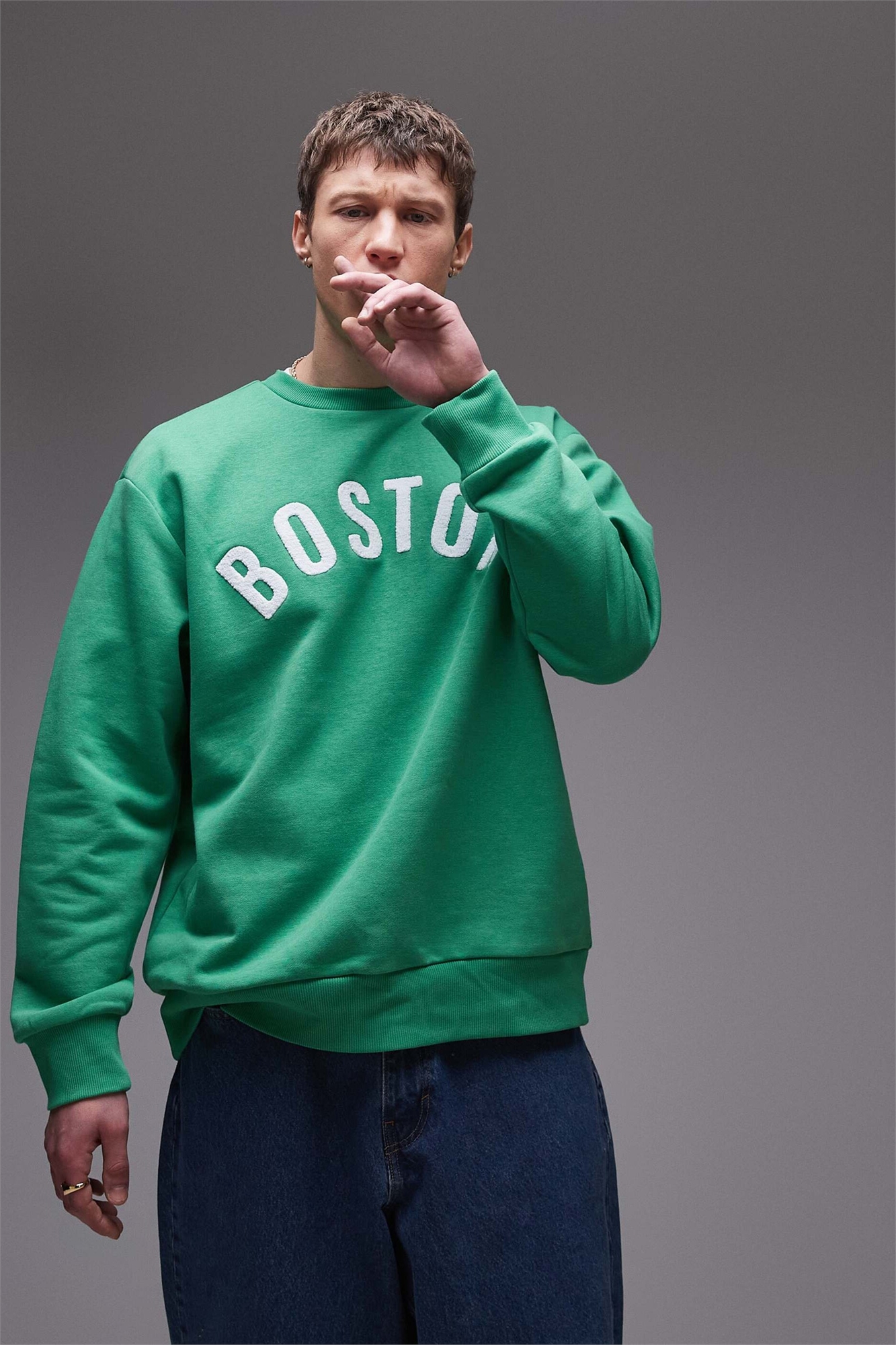 Свитшот свободного кроя с вышивкой из шенилла в стиле Бостона
