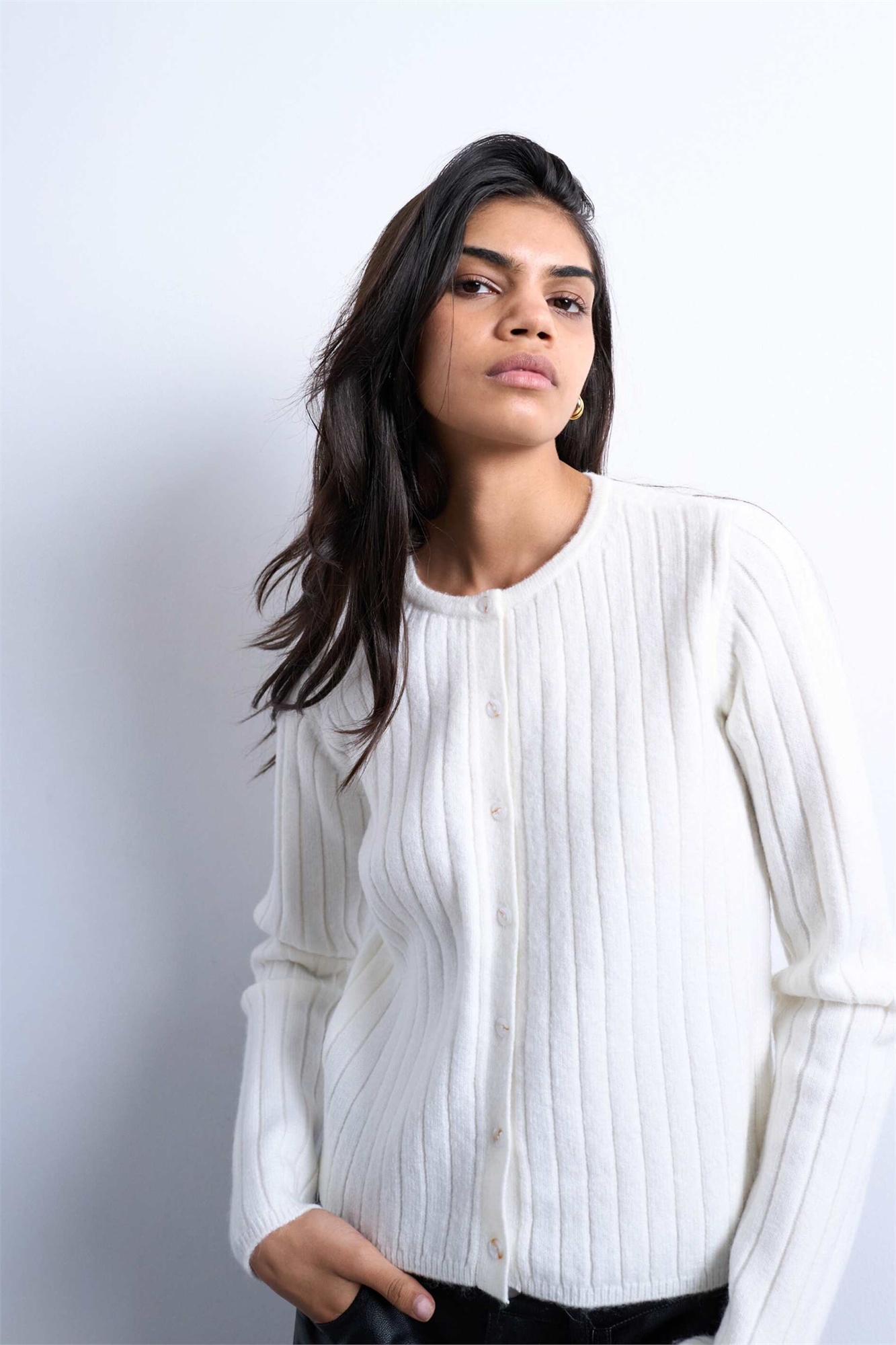 Вязаный кардиган с ребристой отделкой и пуговицами