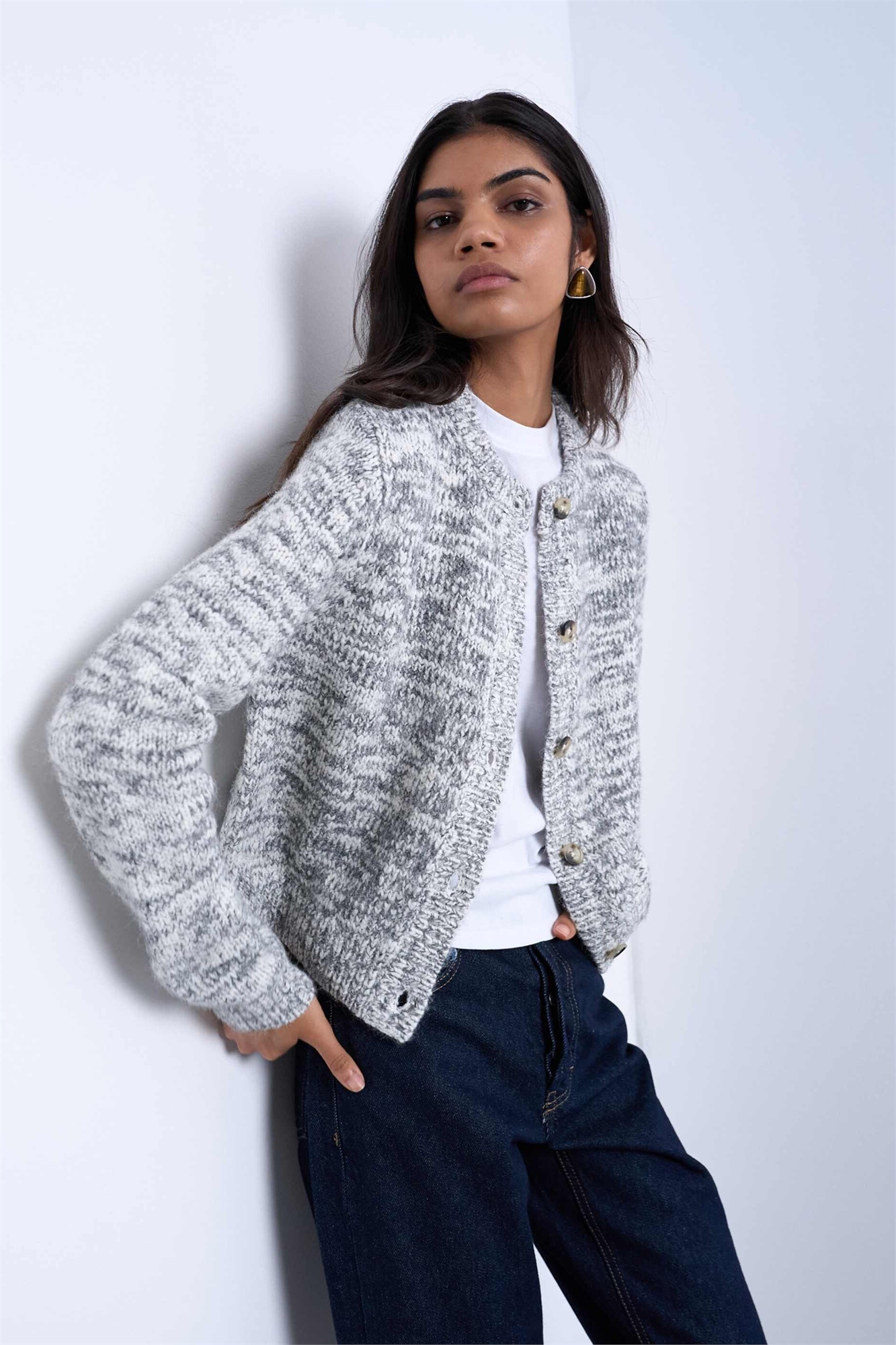 Вязанный кардиган цвета «соль и перец»