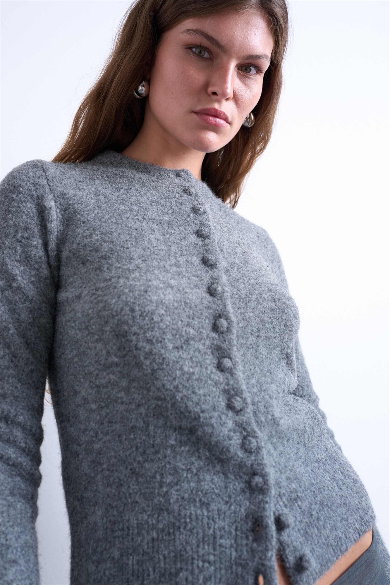 Кардиган с пуговицами, обтянутыми трикотажем