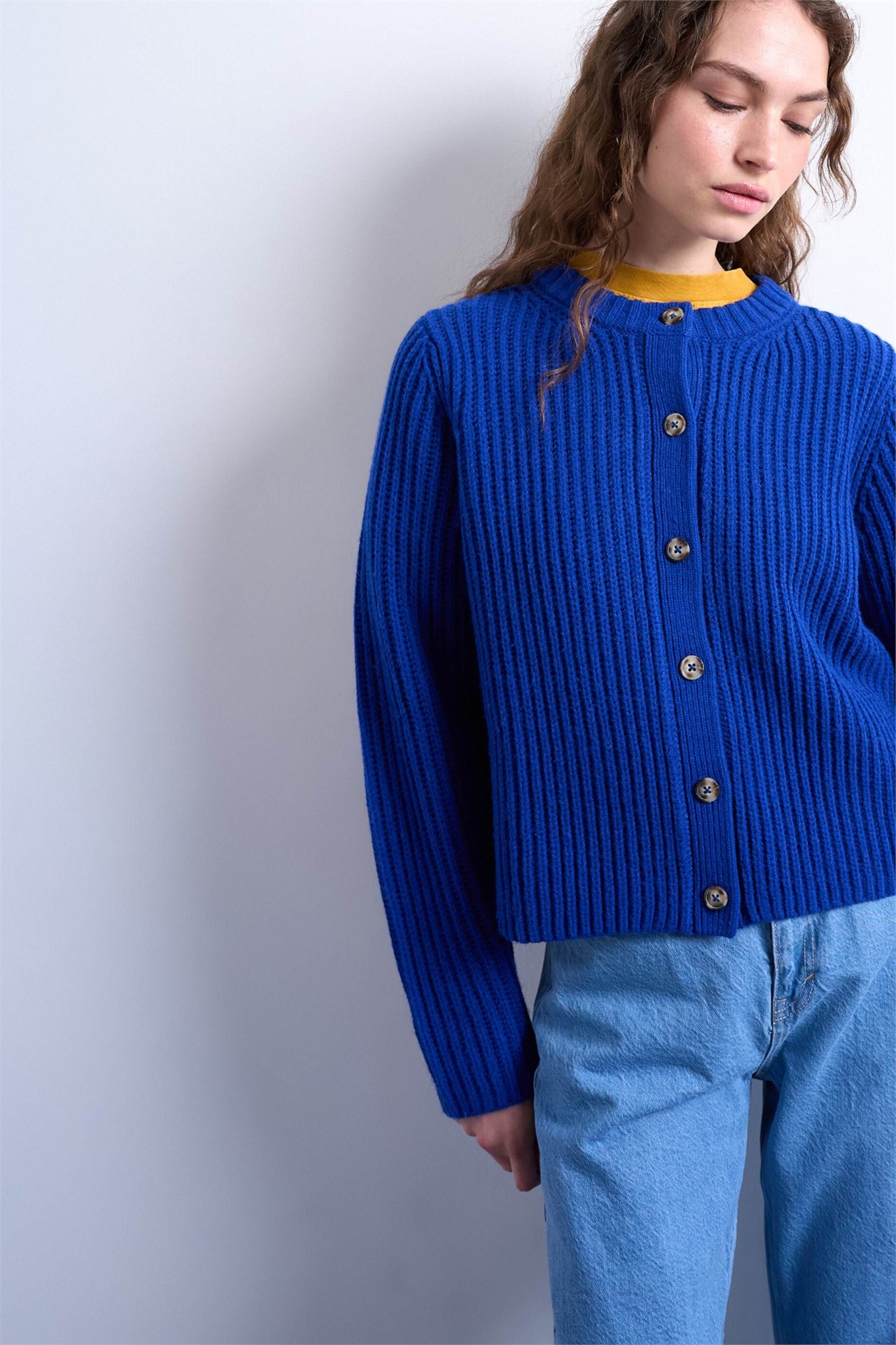 Вязаный кардиган свободного кроя с ребристой горловиной и пуговицами