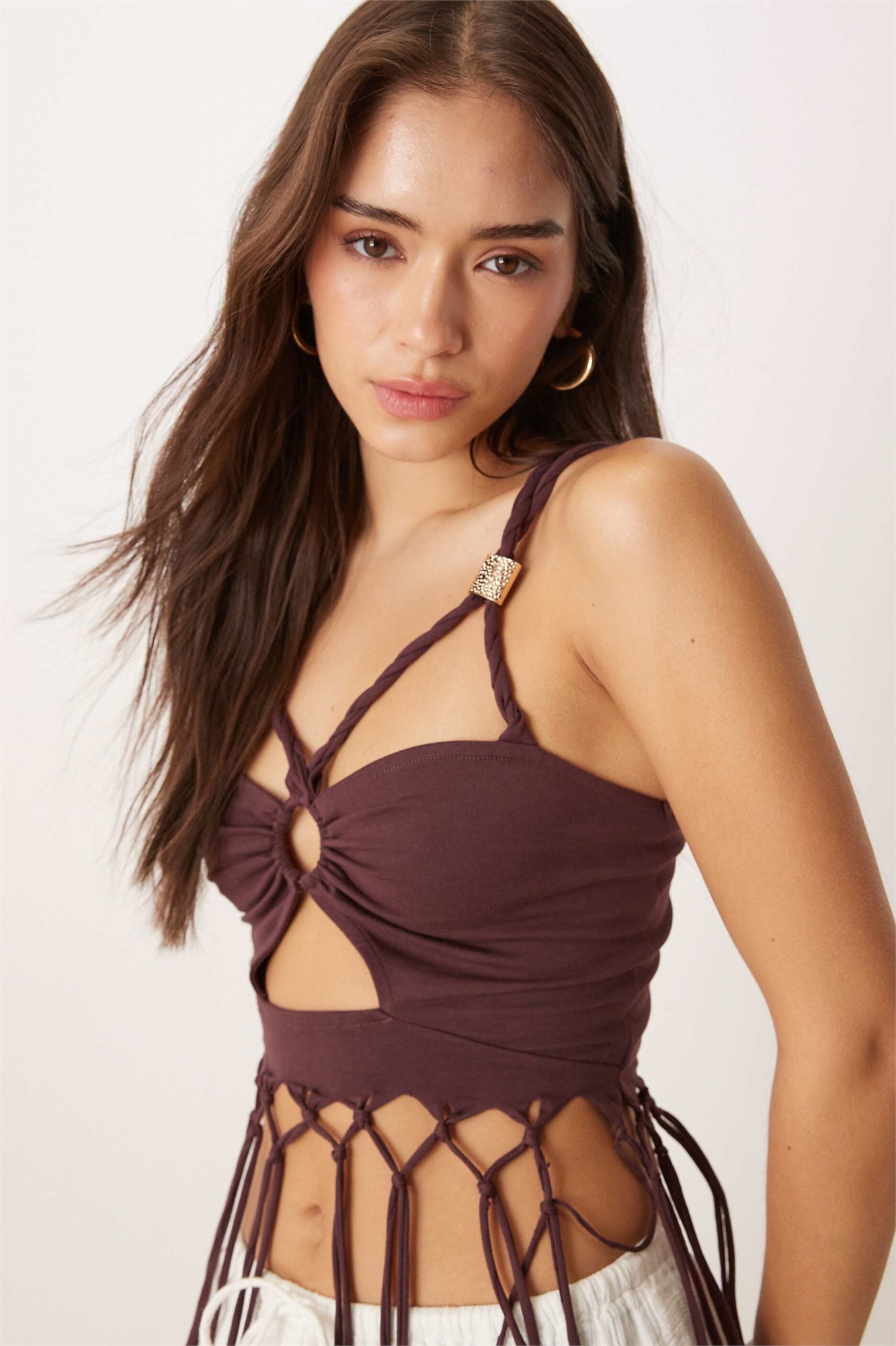 Топ-ками с завязками, сборками спереди и бахромой