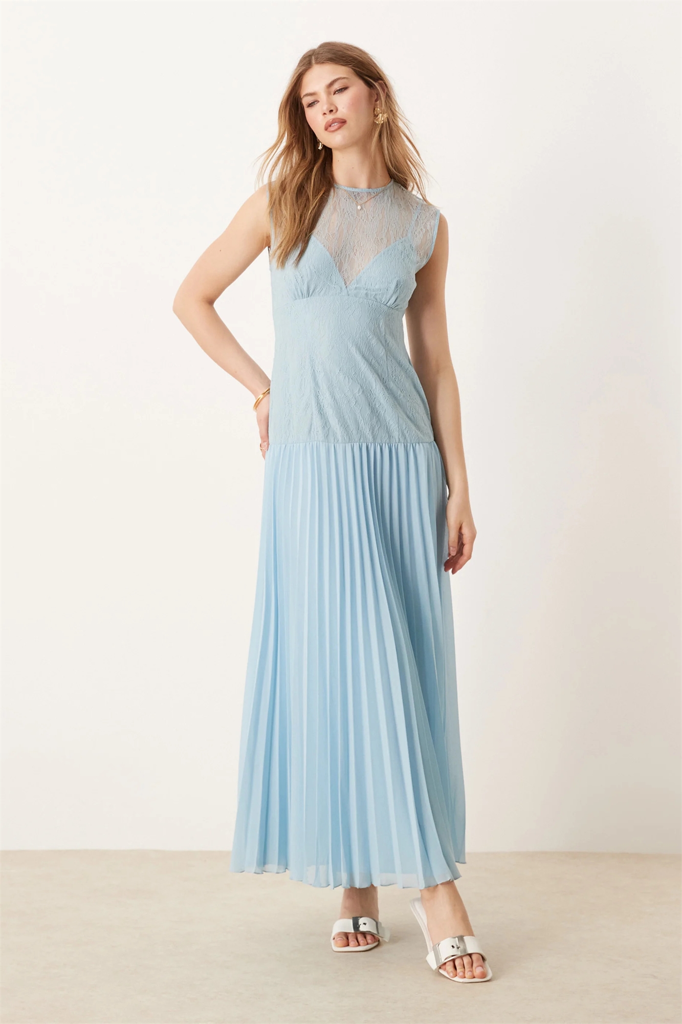 Платье средней длины с кружевным лифом и плиссированной юбкой