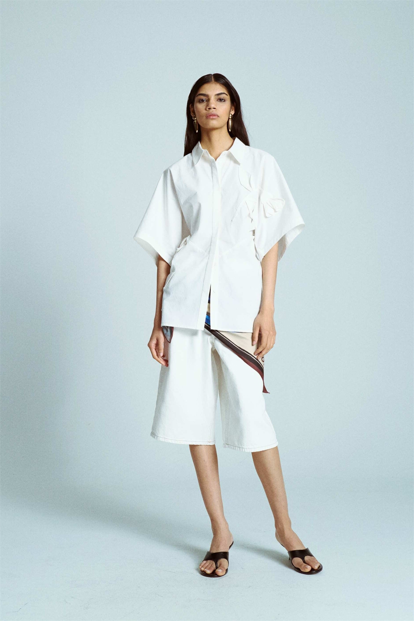 Рубашка курортного стиля с затянутой талией и 3D-аппликацией в виде цветка