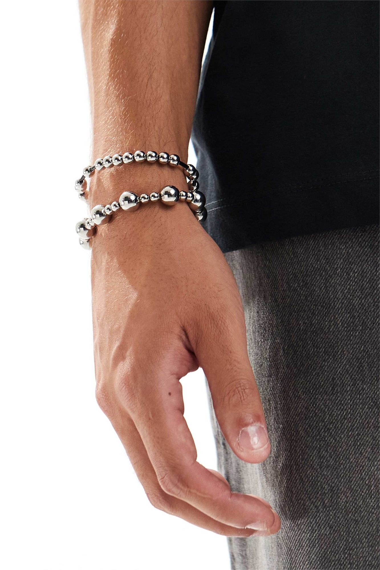 Набор из 2 браслетов с бусинами и черными и серебристыми разделителями
